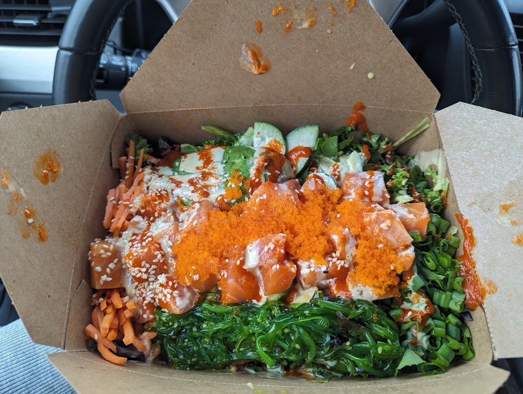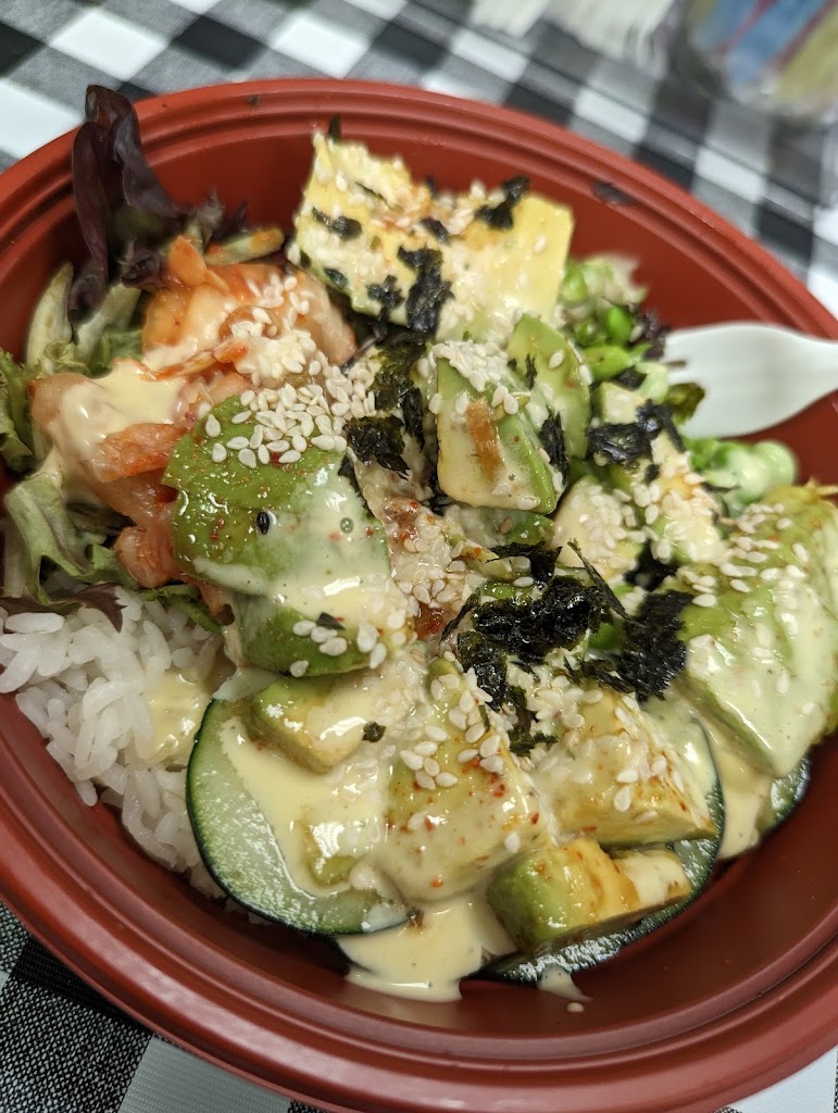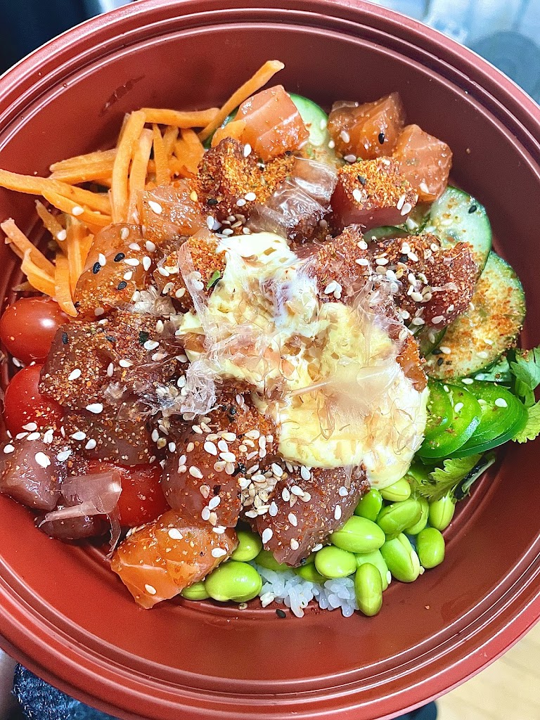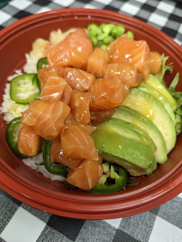 First time i ordered, i had the Spicy Kanikama Bowl. Delicious was the word. This time i had the Ponzu Salmon Bowl and it was even better! Both times, it made for a wonderful lunch hour. It is also fantastic one can customize the bowl additions to their likings, which do not affect the price!