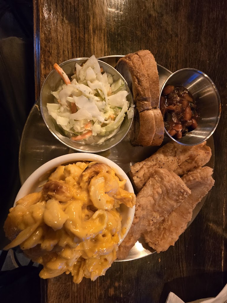First time here to eat. Great fish, walleye and cod...flaky, not dry, beans were delicious cole slaw is very good. I had the mac and cheese side and that took me back to my mom's mac and cheese 50 years ago! It was fabulous! Service is outstanding, doted on me like I was a queen! Plenty of food. Extremely satisfied with HARRISONS!