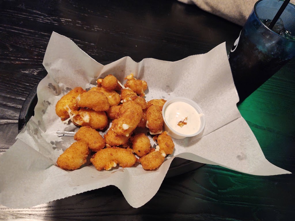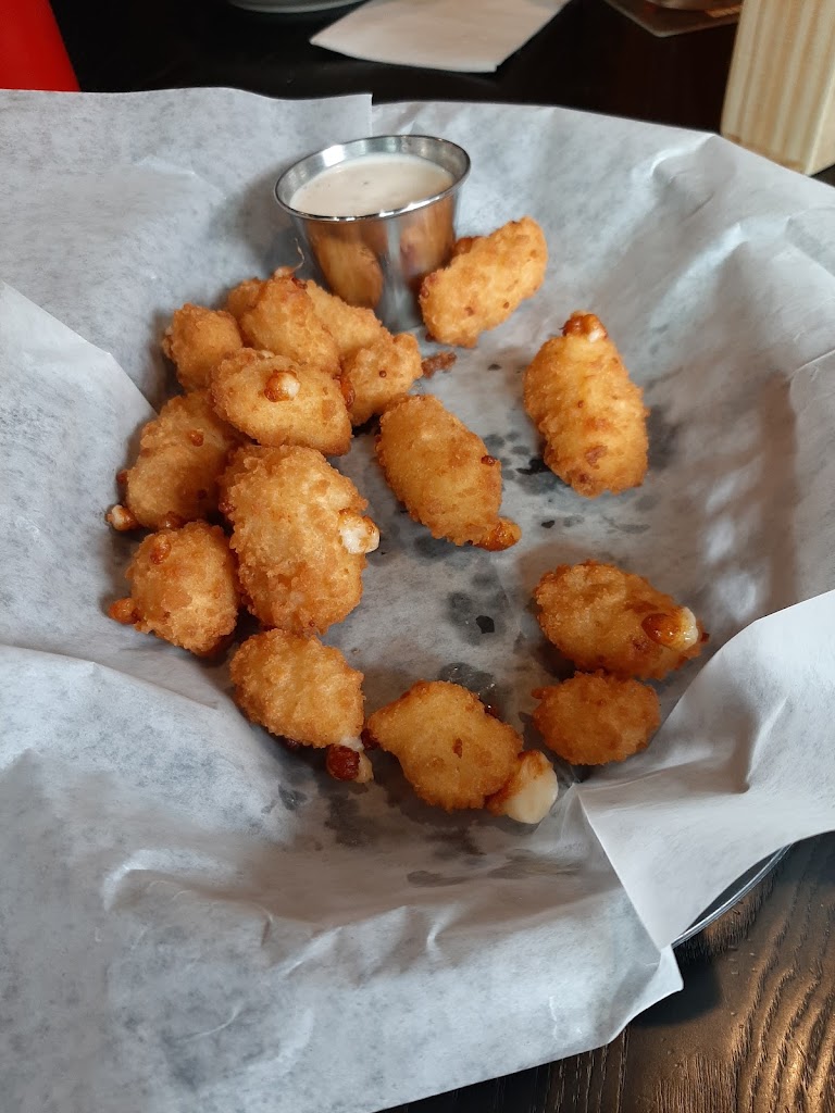 Cheese curds below average no spices but edible. Mushroom appetizer? DO NOT GET. Made me feel ill waitress didn't ask how it was cause they knew how bad it was. I feel ill and I didn't even eat that much 😔😭