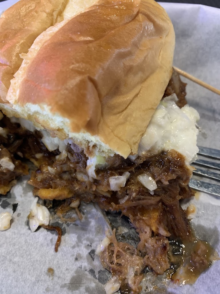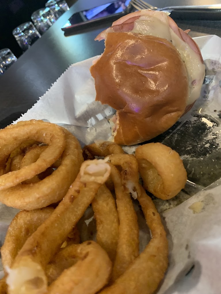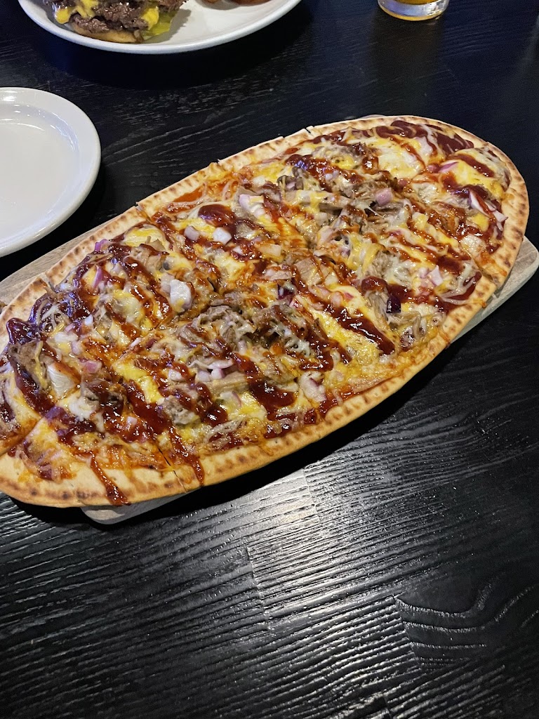 My friend got a triple smash burger and really enjoyed it. I got the chefs flat bread and it was good. It was pulled pork and bbq sauce. It was honestly something I probably could have made at home better but it was tasty.