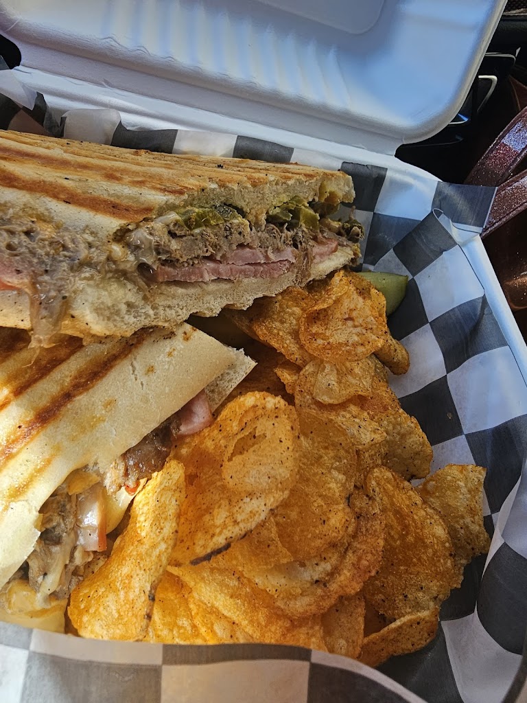 The Cubano sandwich is a 10/10. Good service, cool vibe