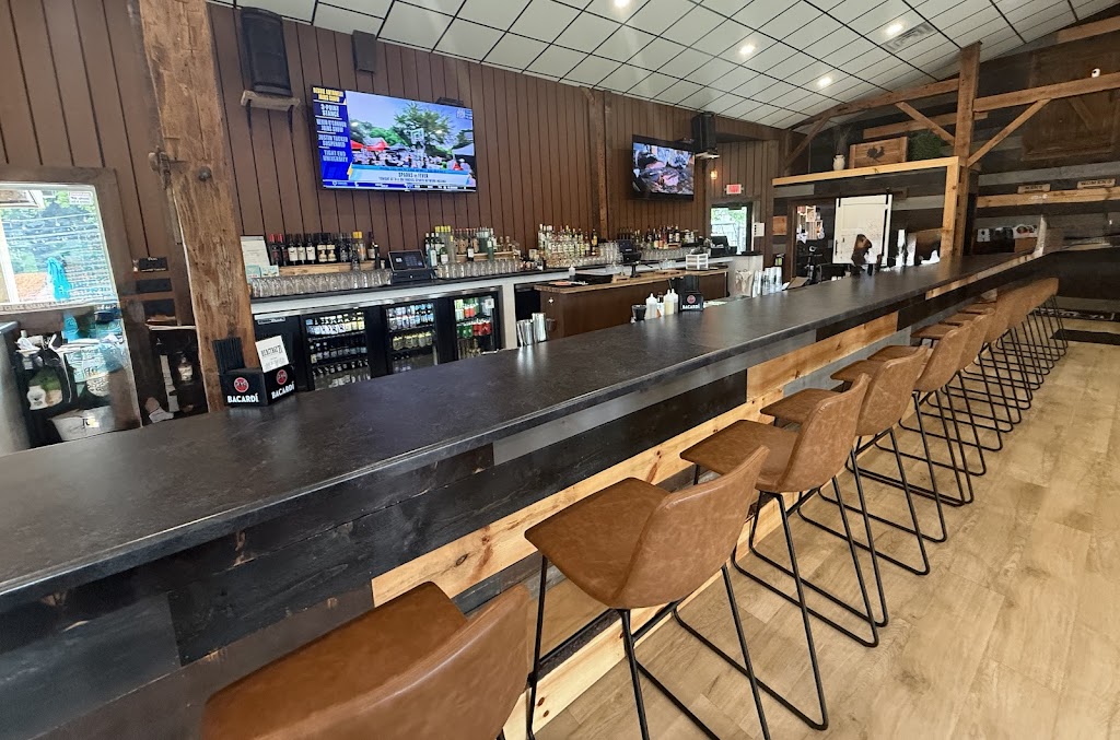 Inside, you’ll find a beautiful, spacious bar with lots of seating and a great vibe, and there is a game room on the lower level.