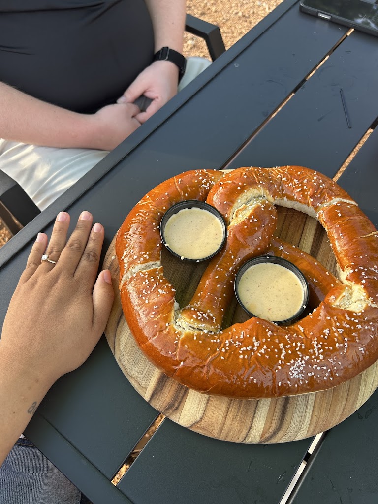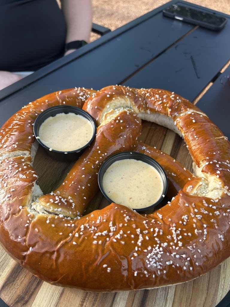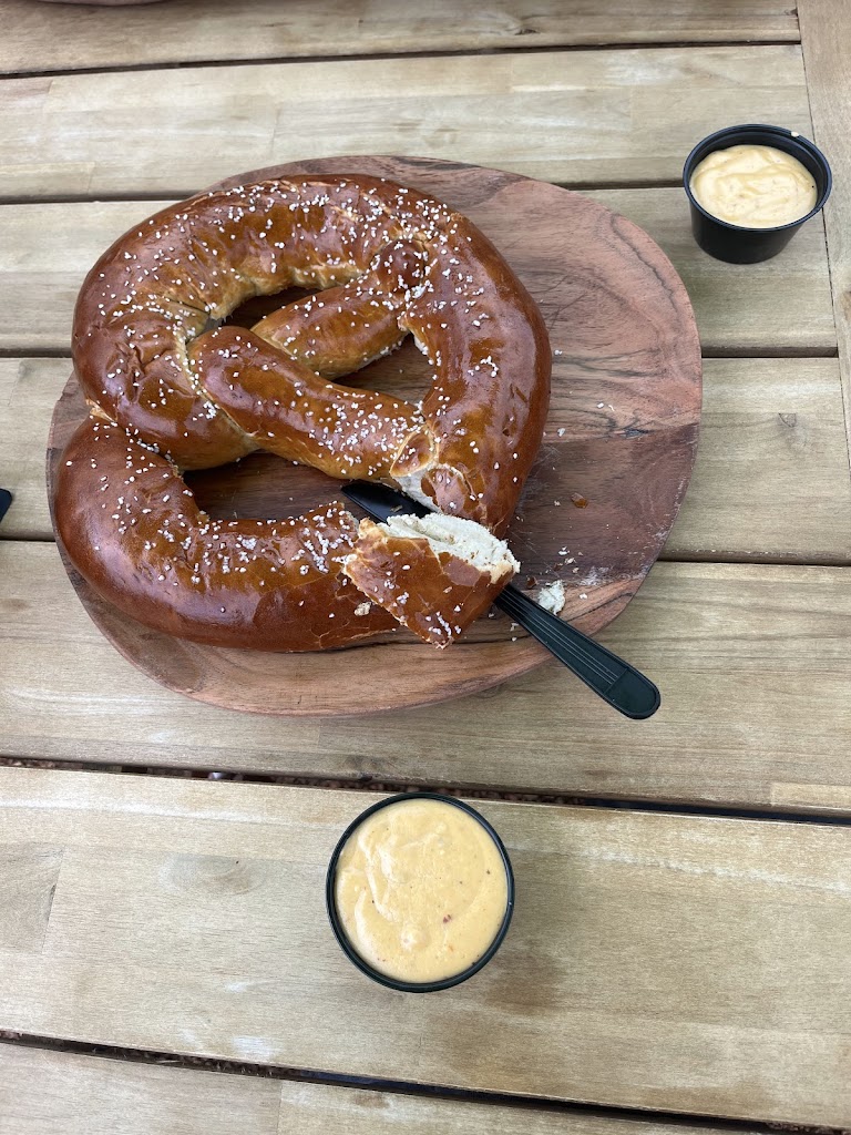 Now the FOOD WAS DELICIOUS. For started we got the pretzel, the waitress wasn’t lying when she said it was JUMBO. 2 of us killed 1/2 of it but definitely could share the whole thing with 4-5 people.