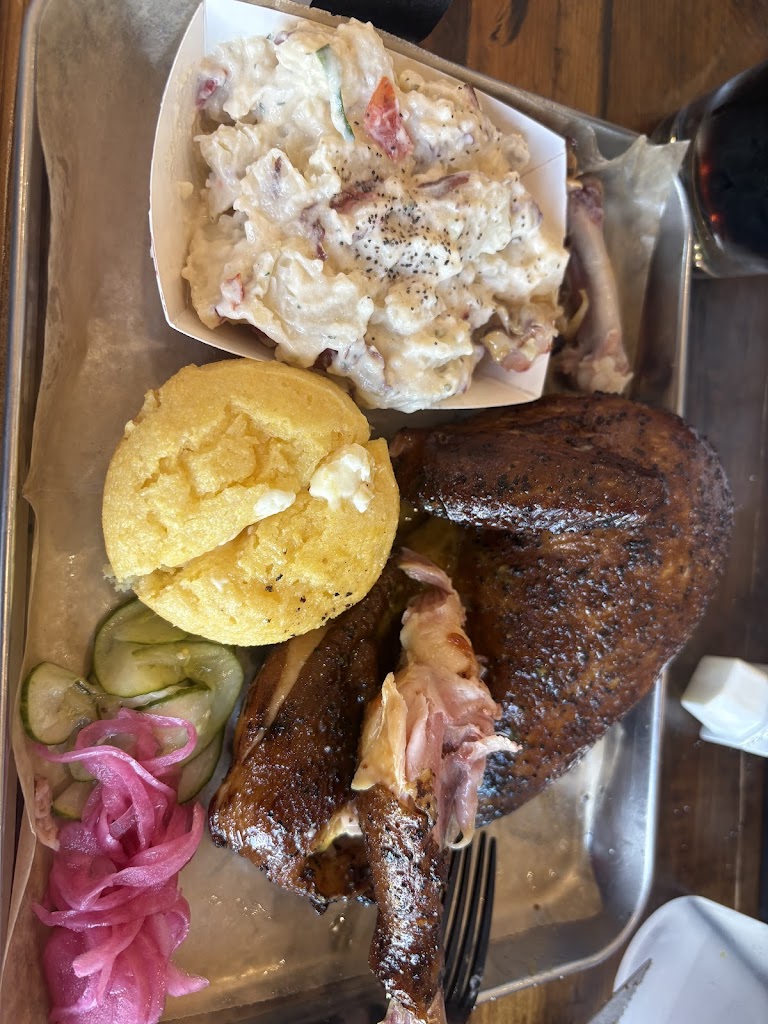 Atmosphere? Immaculate whether it was inside or out. Outdoor patio was a 10/10—perfect spot to let our kids roam semi-feral while we focused on the important things: smoked meats and pretending we were in Texas. oh and they just put in an outdoor bar. You’re three drinks deep all of a sudden and start whispering “i think i live here now” And even though they were absolutely slammed, the staff was busting their briskets to take care of every table with kindness, hustle, and good energy you unfortunately just don’t get at most places these days