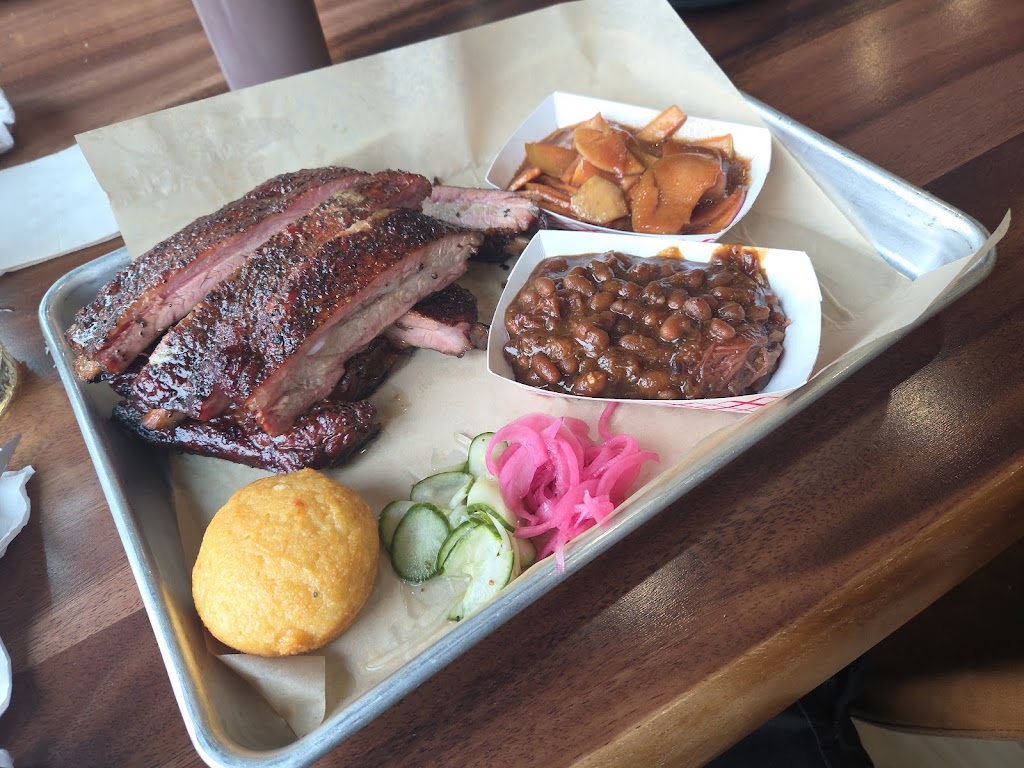My husband has loved all of the meats he's tried (brisket, pulled pork, and ribs, I believe), and I am a huge fan of their burger. Who knew arugula would be good on a cheeseburger? It's fantastic! Don't sleep on their cocktail (and mocktail!) list either - they have a great selection.