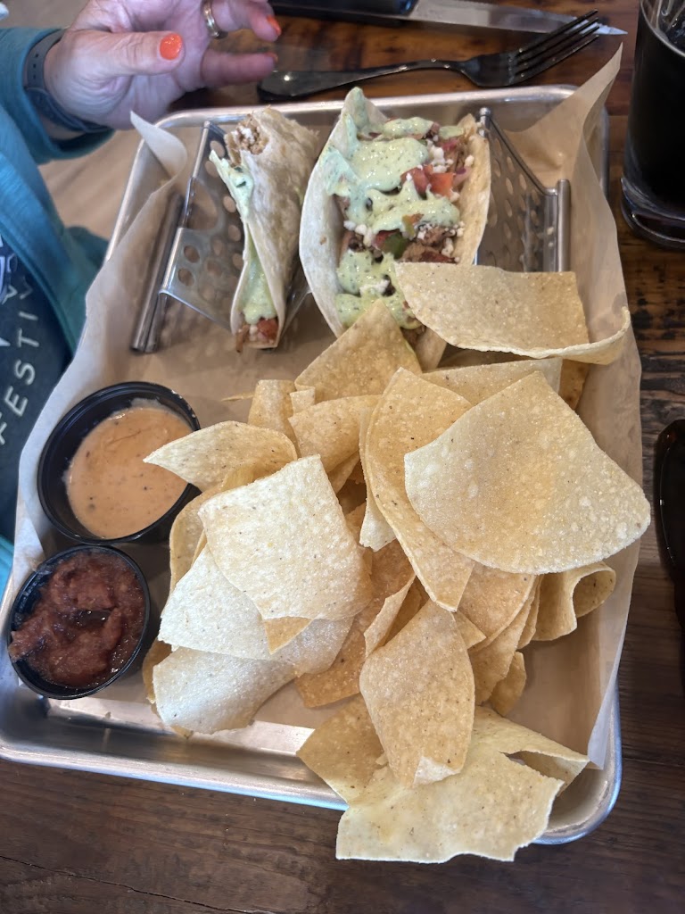 Chicken tacos were delicious! Service was excellent as well as the drinks! Great place for a date night!