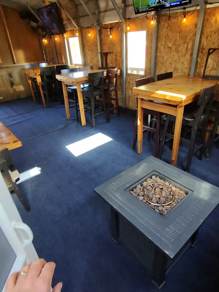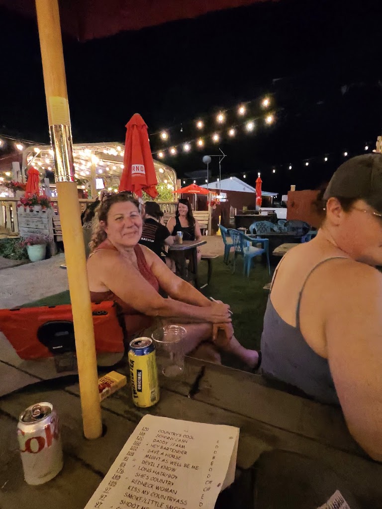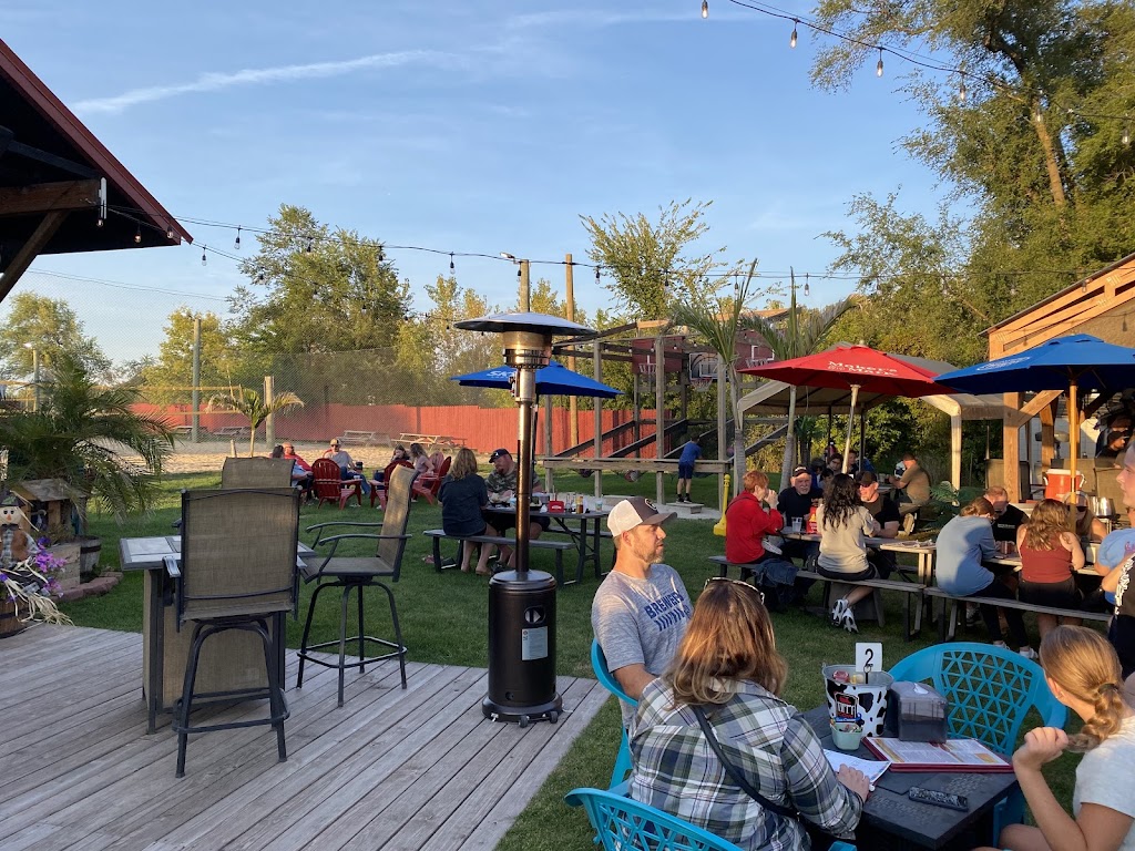 What a great family place. It’s a restaurant and a bar. Volleyball courts, Bags, Basketball throw. Outside bar and restroom (porta potty). Busy place. The band was great. Nice outside space