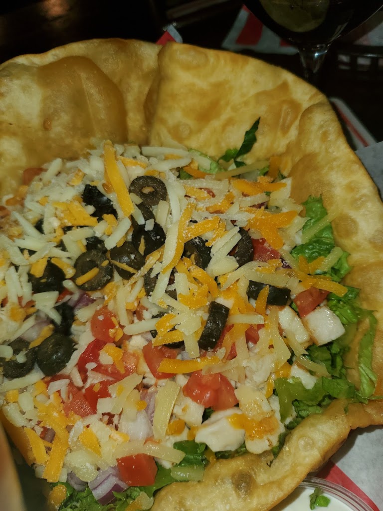 Food is overpriced and not good. Taco salad was served in a stale, burned shell. The chicken had absolutely no flavor. The onion rings were expensive for just a few pieces. Waitress seemed annoyed that my toddler grandson was there even though he is very well behaved. We don't drink alcohol, but thought we'd go to try a meal. Won't be returning.