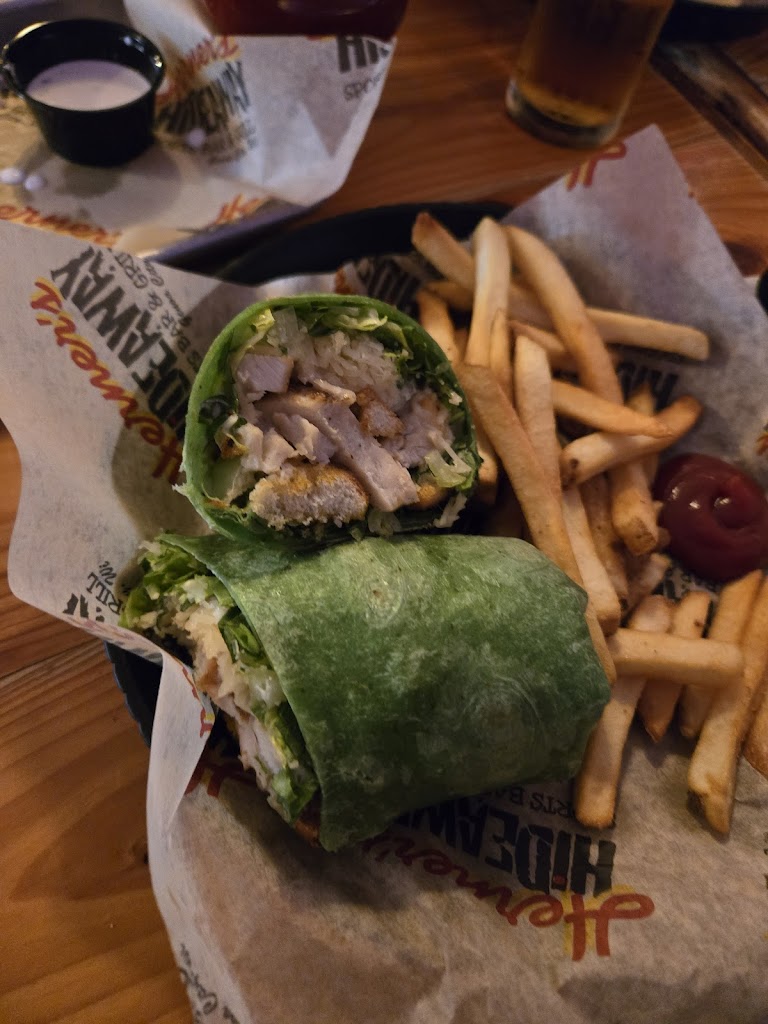 Food was ok.. I got a chicken ranch wrap and wondered where the chicken was… I am sure if it had chicken it would have been great!!! others in our party were also disappointed with their meals.. the club sandwich that one guest got looked amazing and was huge, they said it was delicious!!!