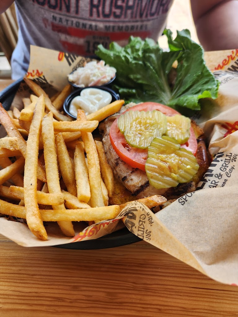 Delicious burgers. Hand made patties. Fresh ingredients. Staff was super friendly. Lots of activities like Bingo, country line dancing, volleyball. Great outdoor space for eating and activities. Plenty of parking. Handicap accessible.