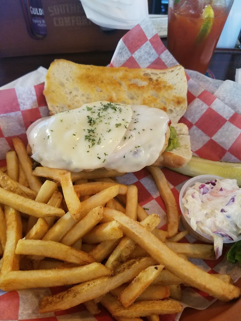 Service was excellent. Prices were comparable to other similar places. My husband's hamburger was perfect. He enjoyed it. I had the Parmesan Chicken Breast sandwich which was disappointing. The chicken is a patty, not a chicken breast. I don't eat anything chopped and pressed especially when it's tough in spots like this was. The sandwich was huge with too much bread. Cheese was not melted. Fries were okay. The token cup of coleslaw was not very good. This has been our favorite place for our rare evenings to eat out but it was disappointing this time.