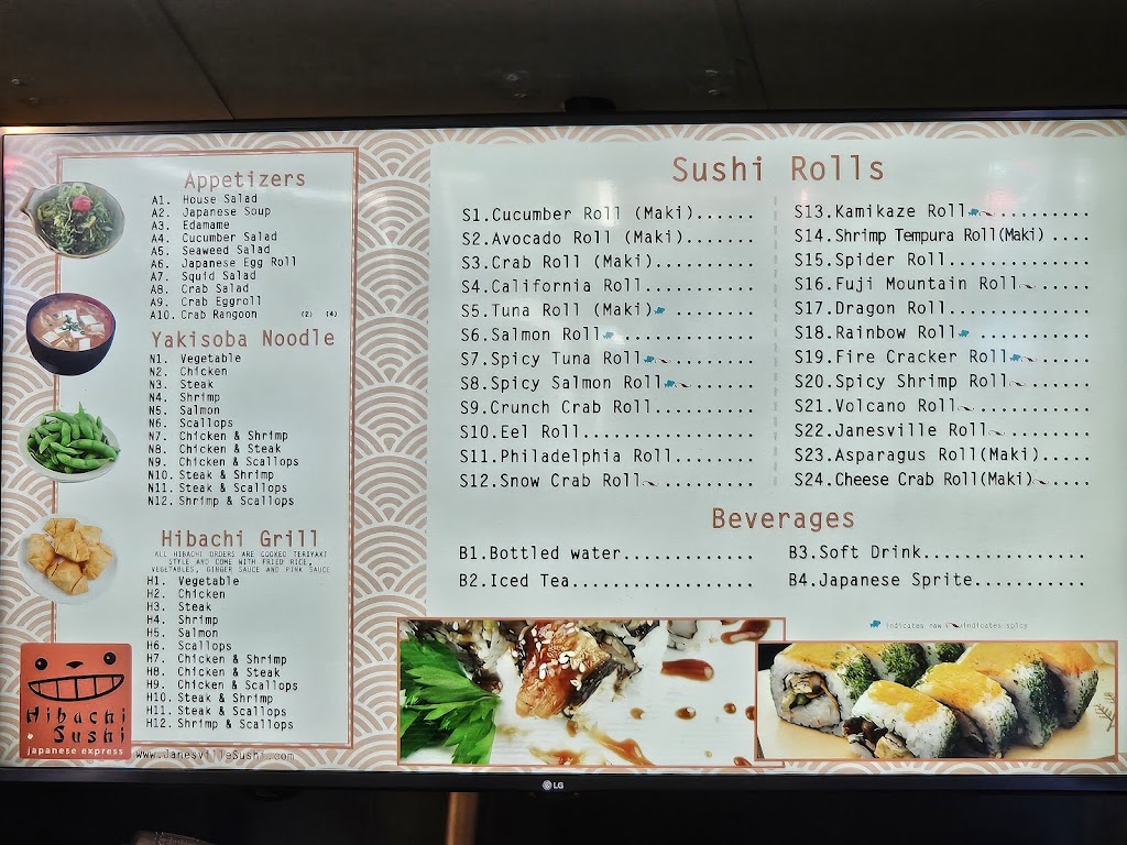 Best Sushi in Janesville by a mile. Great staff, too. Our favorites are the Dragon Roll and the Fuji Mountain Roll and, of course, the Hibachi.