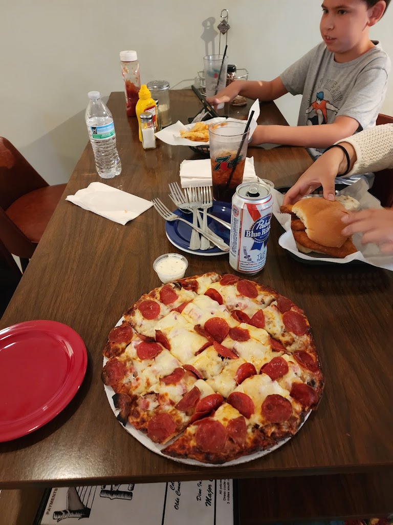 Great place for food and drink. We had their pizza and it was amazing. The sauce had a nice flavor, they put a good amount of each topping on the pizza, and they had a great variety of topping to offer. I highly recommend this local eatery. You won’t regret it.