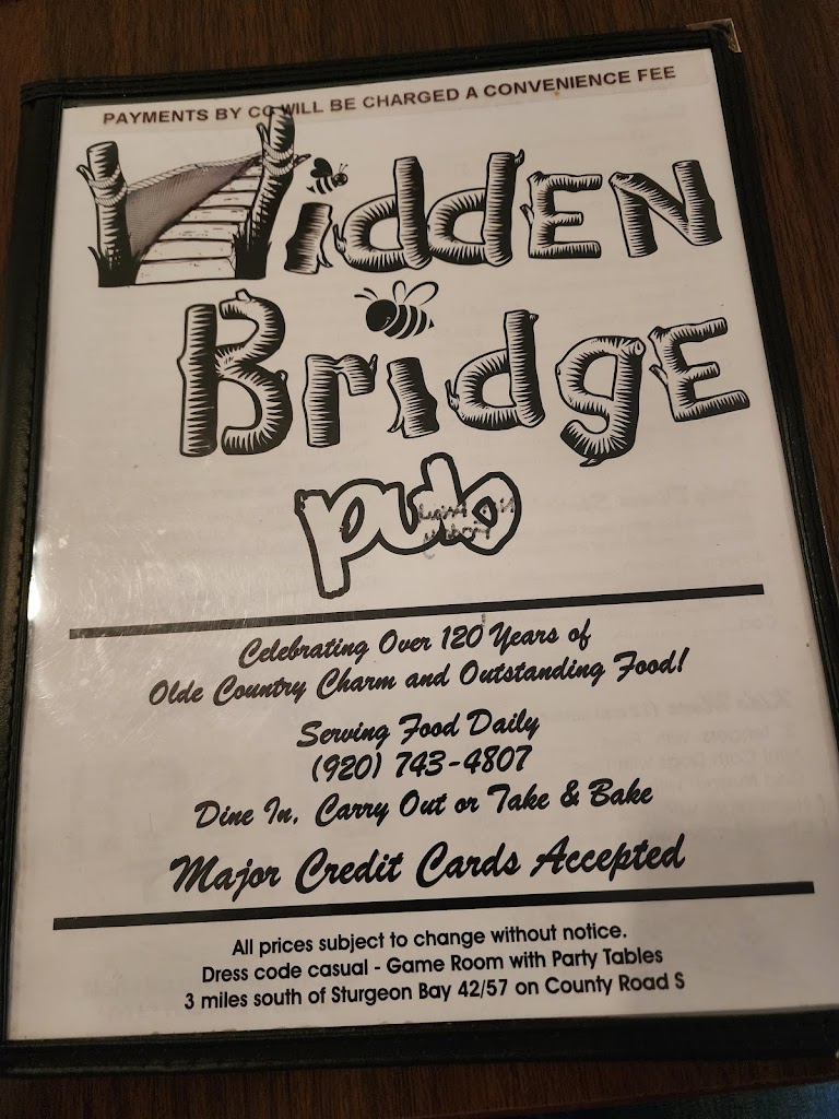 Been coming to Door County for years. Always like trying different places. Decided to check out pizza places this trip. Pizza at the usual places further up the peninsula seems to have fallen off recently. Found Hidden Bridge online and thought we would give it a try. Pizza was great here. Asked for it a little crispy because that’s how I like it and it was cooked perfect. Service was great while I waited. Bar was basic and for sure a local spot, not tourist spot. If you like coming to DC and want to try some local hidden gems off the beaten path give this place a shot.