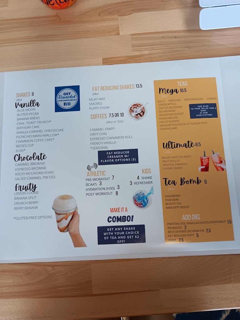 Shakes are amazing, TONS of different flavor varieties so one is definitely going to but your cravings! Teas that taste more like juice are filled with the energy I need to keep up with all my daily needs! Staff is upbeat and friendly! Atmosphere is kid friendly! They run specials all the time with fun themes, and new flavors!