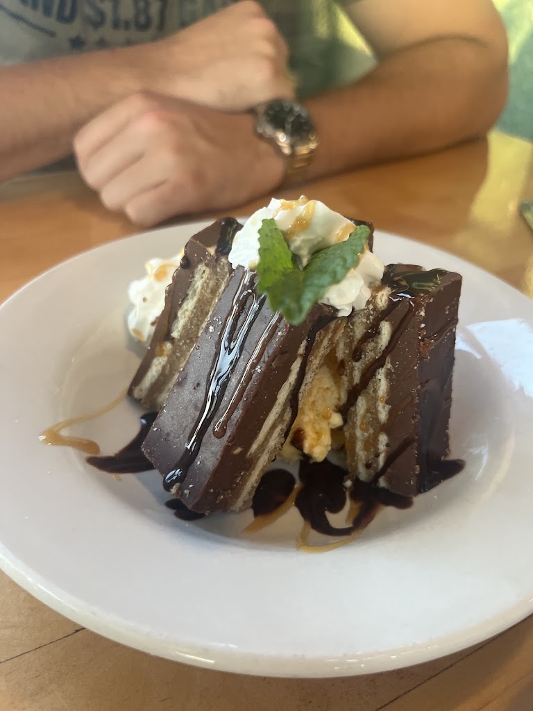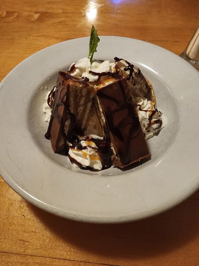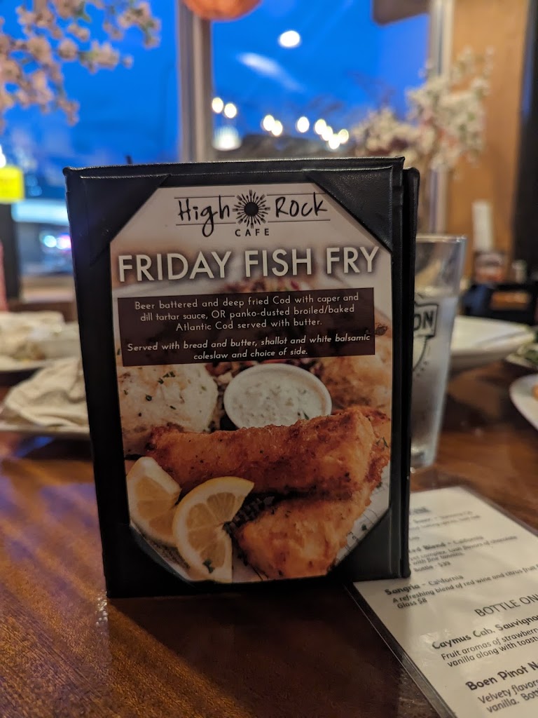 Always enjoy the High Rock cafe! The place is must if you are visiting the area. My husband ordered the walleye dinner which was delicious and I ordered a delicious pasta dish (I can't remember the name). Service was good. We topped our dinner off with the dessert of the day and left completely stuffed!