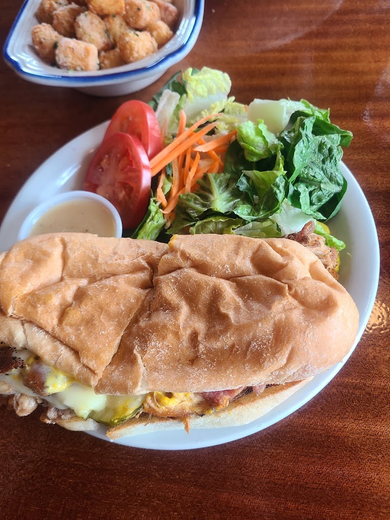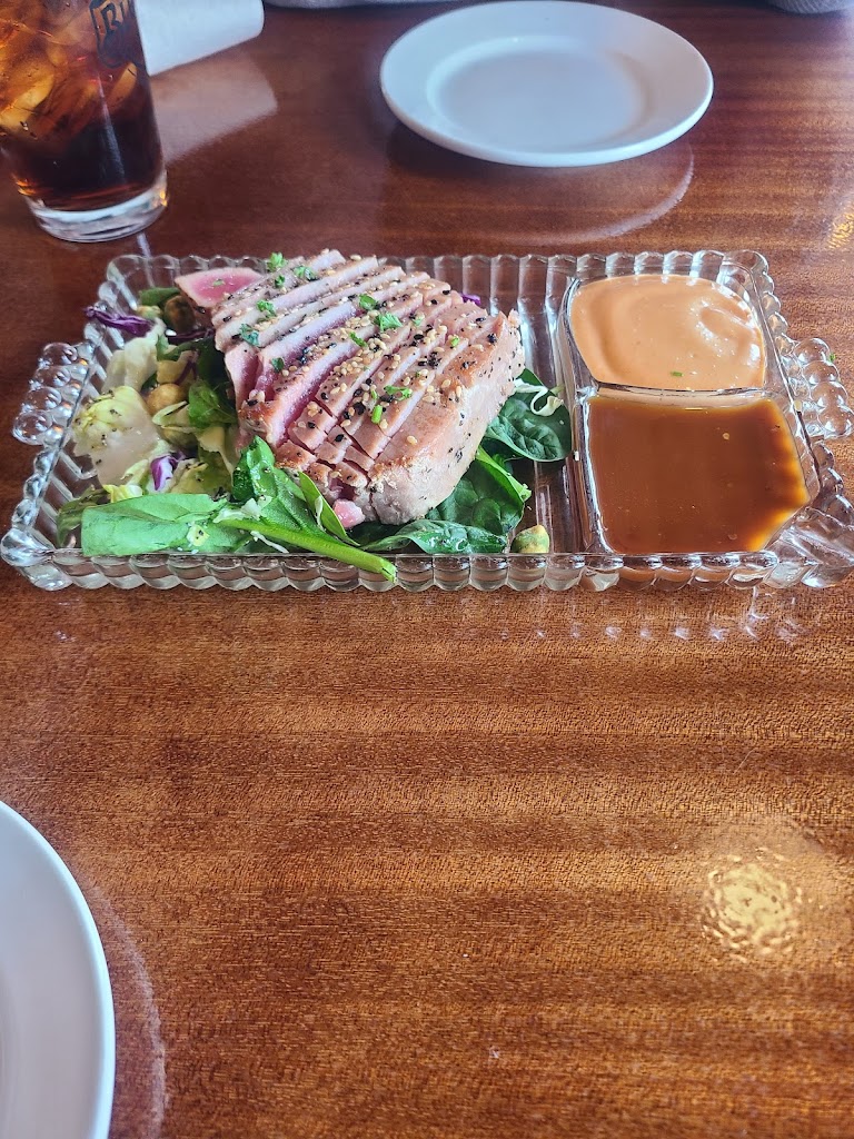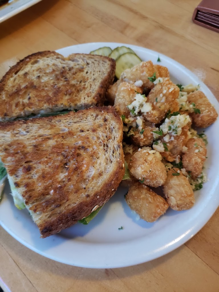 Fancy for a cafe, we had the ahi tuna appetizer, king mac with shrimp with tatertot side and a cubano with a side house salad. The mac sauce was the only thing that impressed me, they seem to make it in house. The ahi was perfectly done but i only liked the spicy sauce (the one that doesnt look mayo based). The cubano had too much pulled pork for the rest of the toppings and sauce. The white balsamic vinaigrette was the star of the salad, i asked for no croutons but it still had a couple tiny ones.