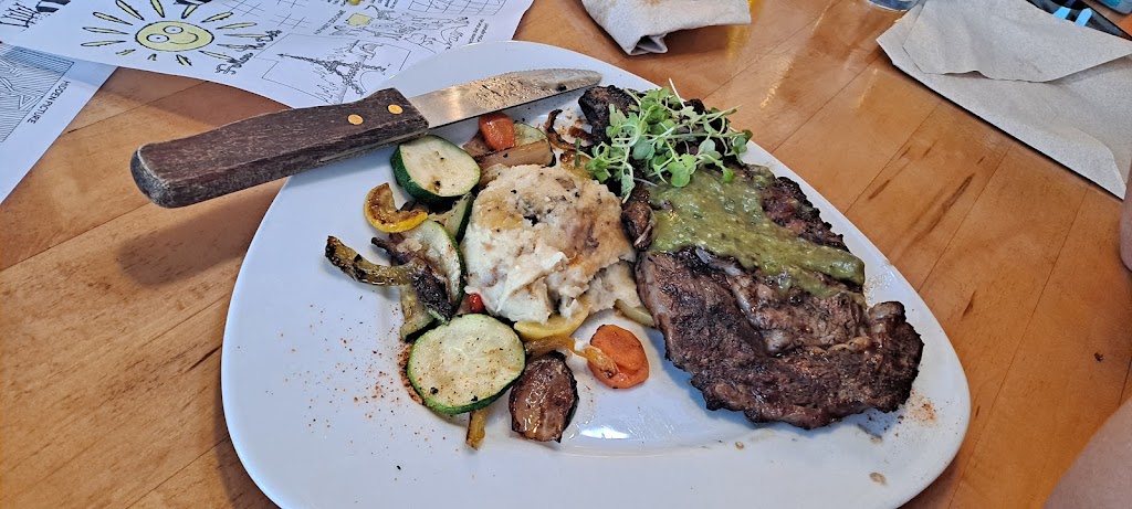 Food was great, however services was lacking,it started with the one taking our order not familiar with menu, we had to hunt down a server for our water, (3 wait staff including ours chatting behind bar) where is our food and never checked on us how everything was or needed anything. Again had to get up and ask for condiments for our meal. Salads came after the meal. We were the only ones on patio and 3 tables inside, not a busy time. Very disappointed in service.