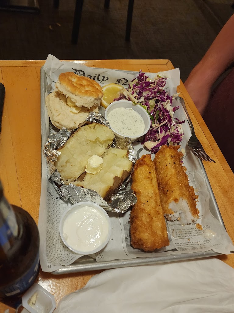 Baked potato with fish fry was room temperature. Fish had no taste. But the hostess and wait staff were amazing, I’d give them 10 stars if I could