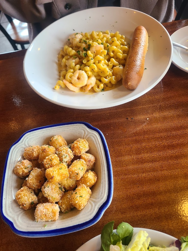 Went here in the off season, so it was populated but not crowded. Service was a little slow but not terrible. We got the truffle curds, the pesto pasta, and the meatloaf and macaroni dish. The food was tasty and plentiful but not super appealing to look at. That said, this isn't a place you're going for the fancy plating. We squeezed 3 meals each out of our appetizer and two entrees, so we were definitely able to get our money's worth. Overall a good stop in the Dells but not one to plan a trip around.