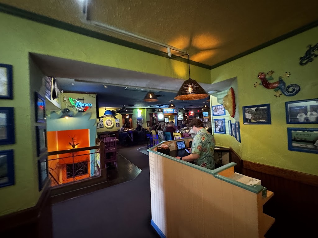 While it seems like a fun, sort of "mom and pop Margaritaville" type spot for dinner on a Friday or Saturday, with inoffensive/unobtrusive food, cold drinks, and a party vibe, Tuesday lunch service drew a sparse crowd, still inoffensive/unobtrusive food (despite the generous portion sizes that we were warned about), and a sleepy vibe as though it had just woken up and realized there was someone there who wanted lunch. No problems or issues, fair prices, friendly enough service.