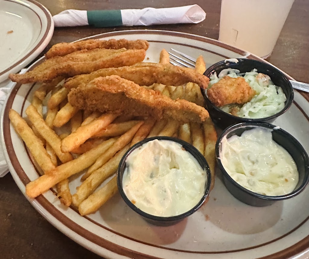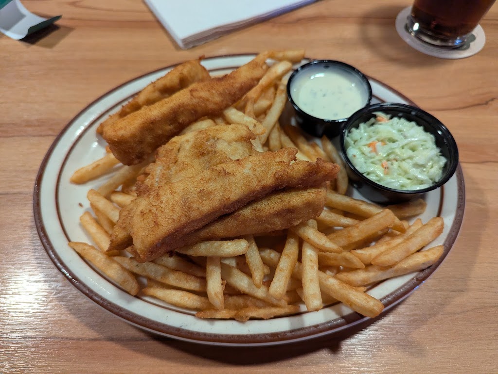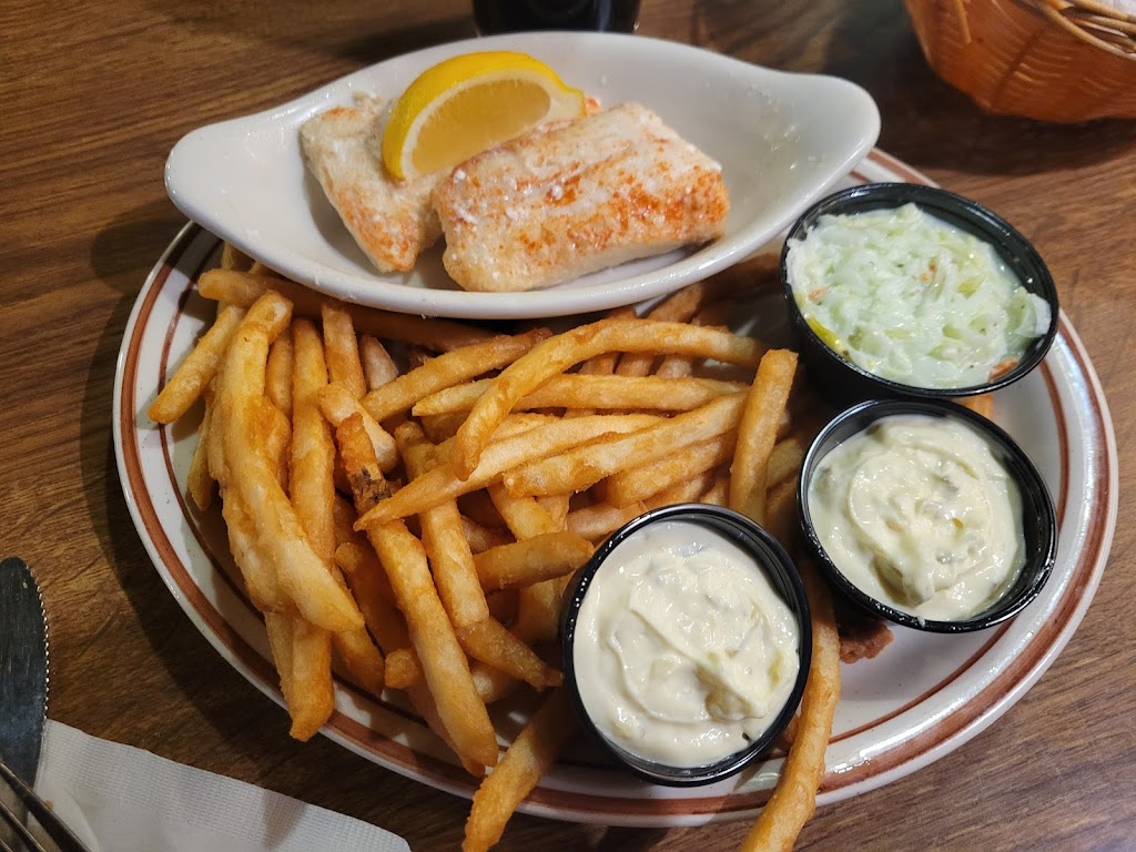 The atmosphere is great. The waitress was “above and beyond” fantastic! Amazing service. I would have given the food a 5 star, but I struggled with the fish. I had walleye fillets. The fillets were fried, SKIN and all. I am not a fan of eating the skin of a walleye. Being kind, I didn’t relay this to the waitress because she was great and I didn’t want to ruin her mood. The cheese curds were really good. The spinach dip was really good. I hate to leave a negative review, but don’t order the walleye unless you wanna eat fried fish skin. It wasn’t fried long enough to cook the skin well either, it just made it moist and slimy. It made it taste like I grabbed it out of the river and took a bite out of the side of it. $18.99 and the French fries and coleslaw was all I ate of the plate. (By the way, the coleslaw is amazing!!). I went there due to the perch reviews, but perch is only on Fridays. Thanks.