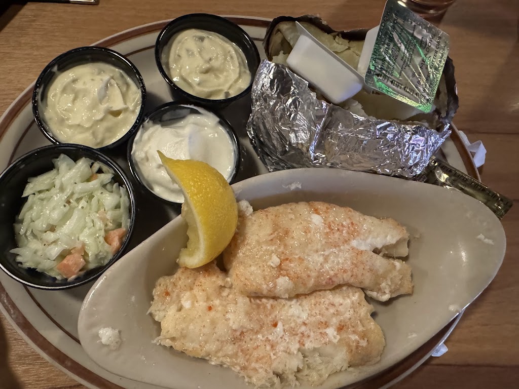 I had baked fish on my first visit was not the best day 2&3 had my rib eye steak perfectly done to my liking the staff and atmosphere 5 star .I highly recommend.