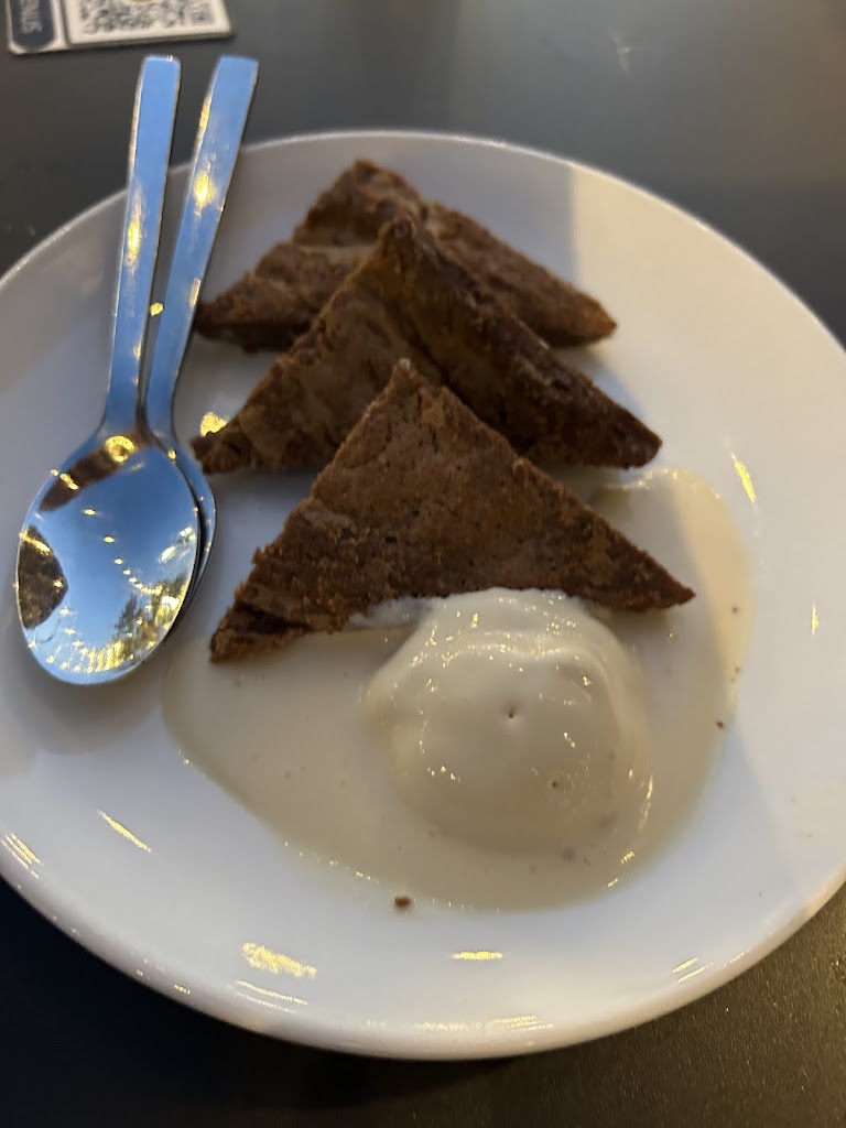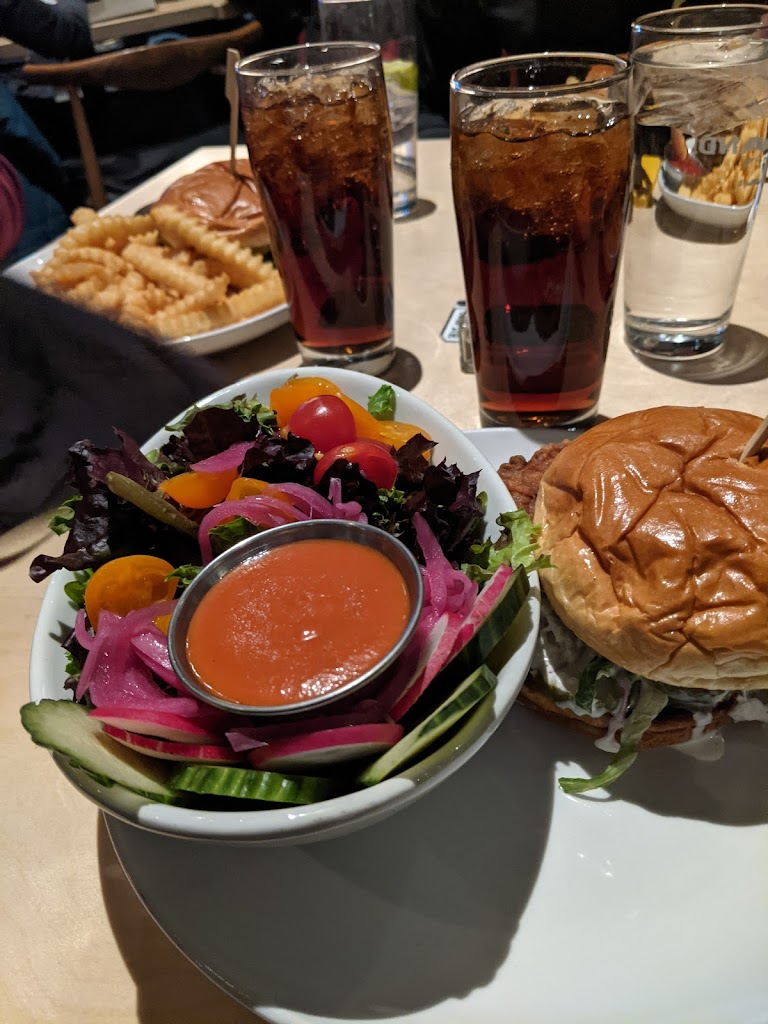 We also ordered the cod and a Hinty burger (gf buns were amazing, btw), one with chips and one with fries so I could try a little of everything. And of course, even though we were way too full, had to get the gf brownie with ice cream!