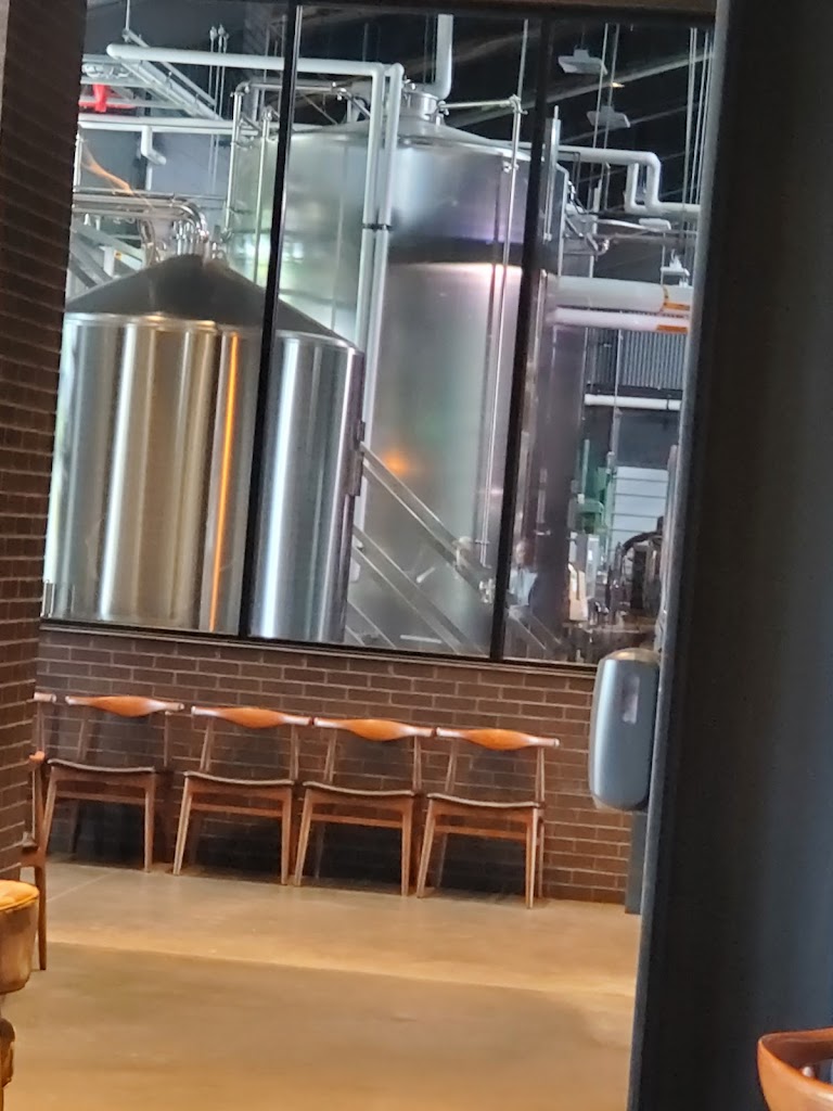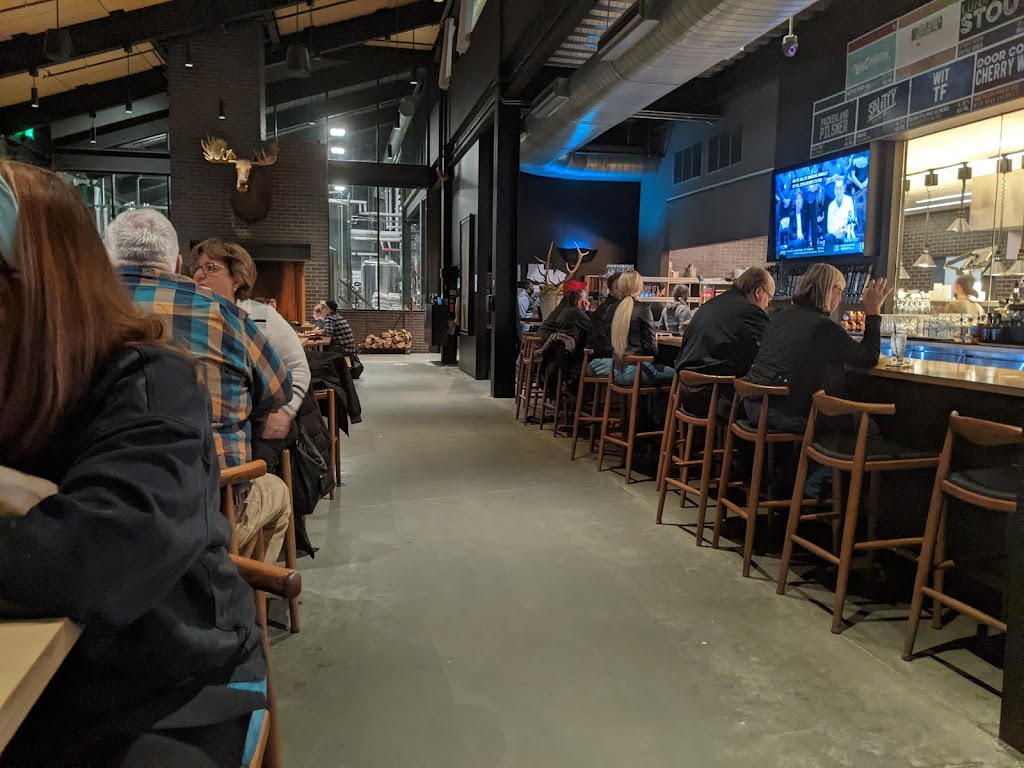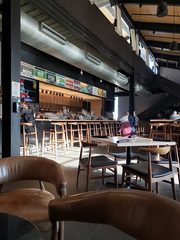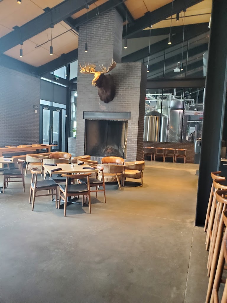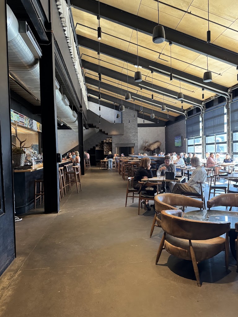 Brewery/restaurant located just next to the stadium. Amazing atmosphere and decor with fireplace and factory equipment in the brewery.