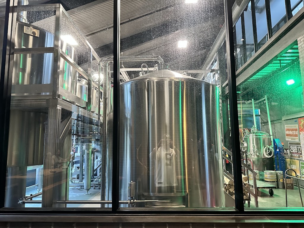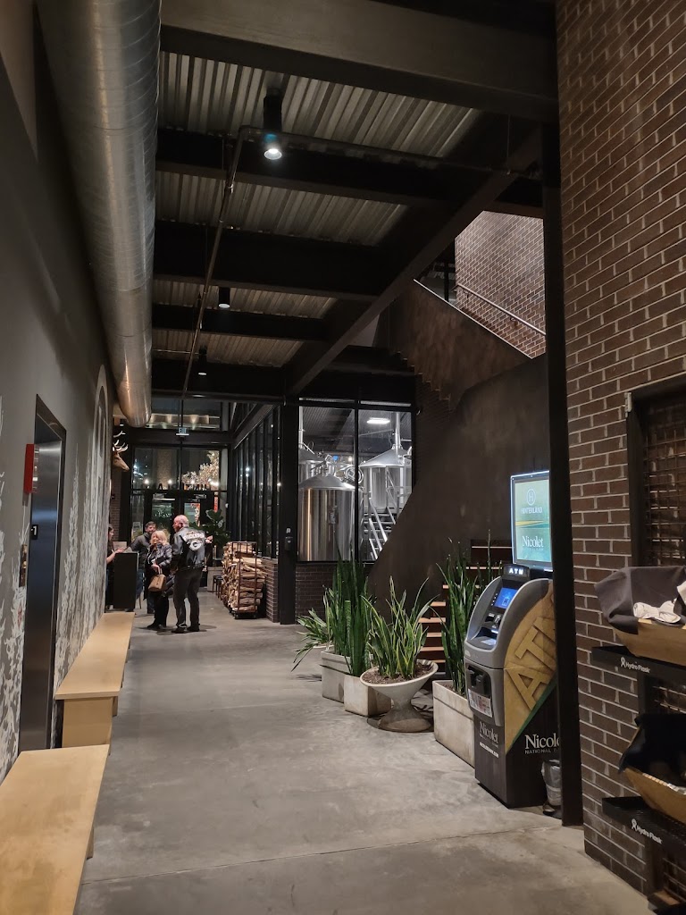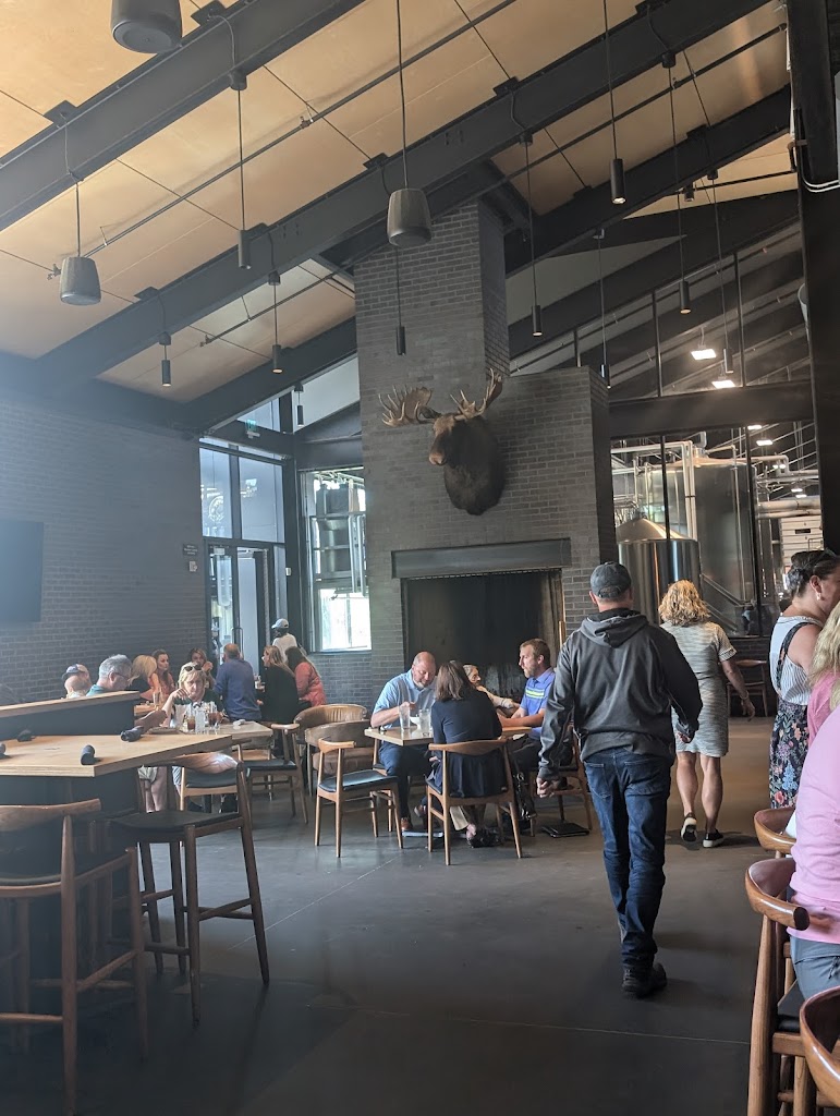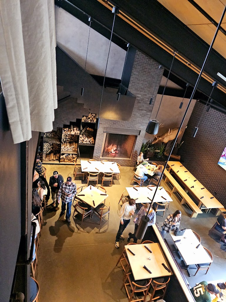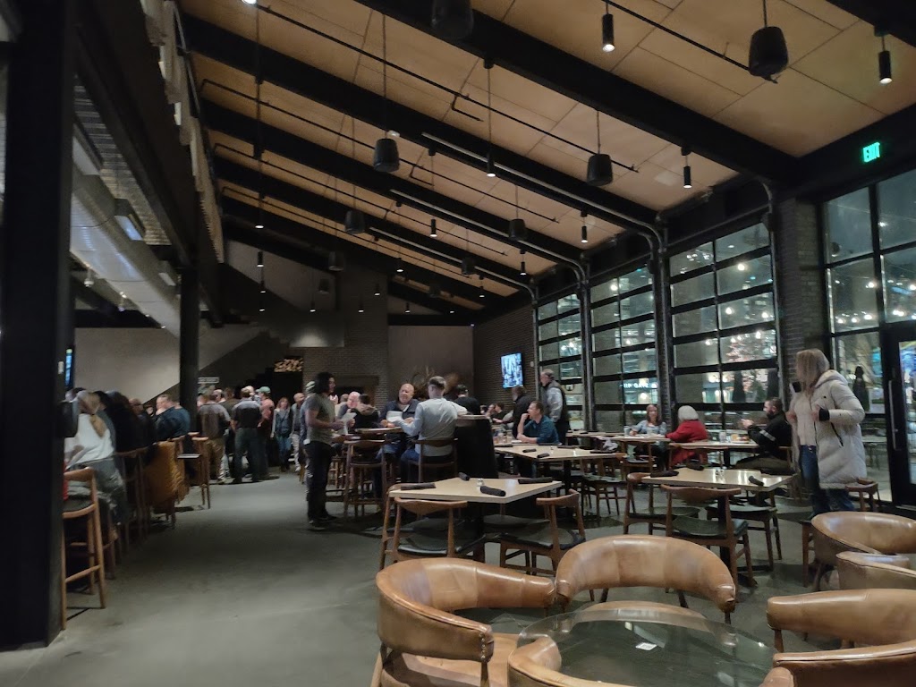 Brewery/restaurant located just next to the stadium. Amazing atmosphere and decor with fireplace and factory equipment in the brewery.