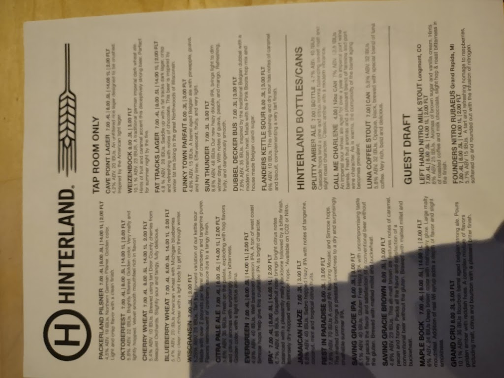 Hinterland has my favorite beer ever, pretty much right across the range but especially the Bourbon Barrel Grand Cru. I've always loved their pizzas. Just a consistently great experience.
