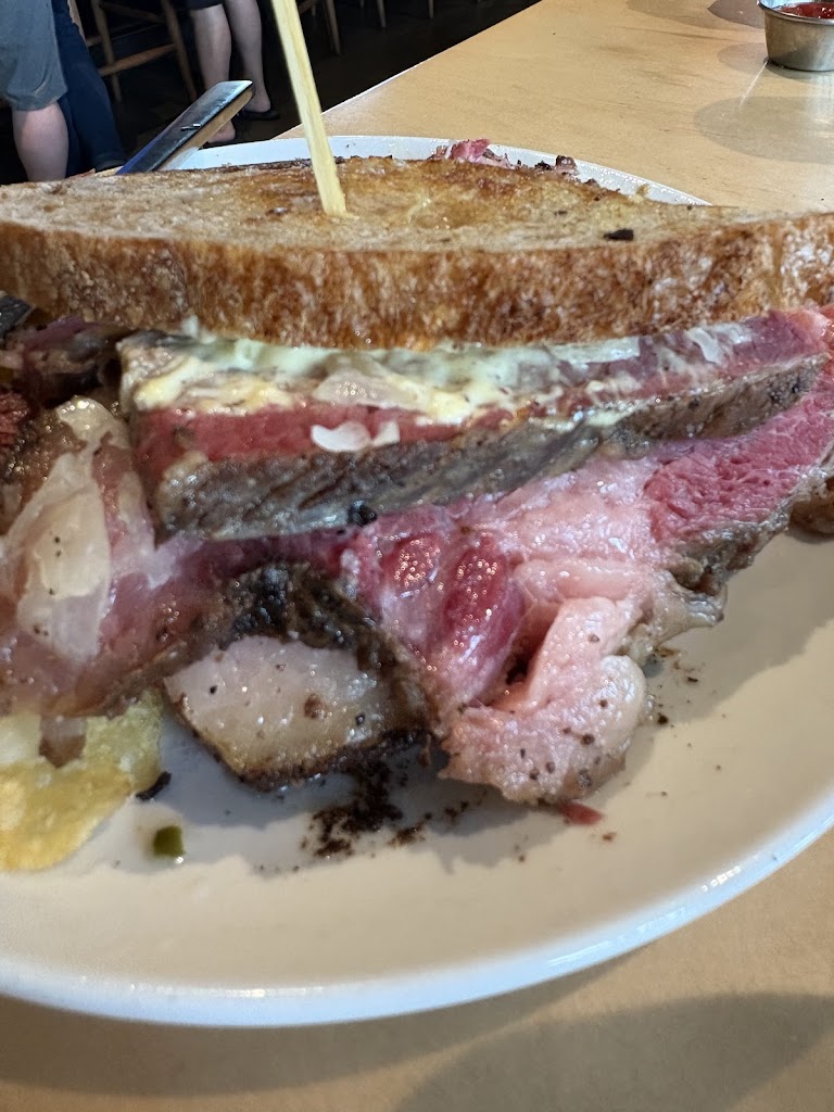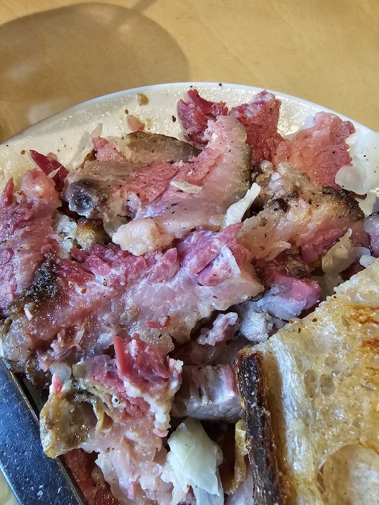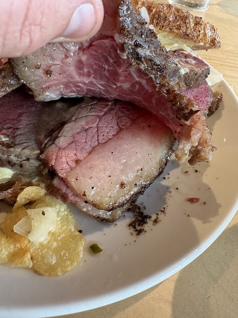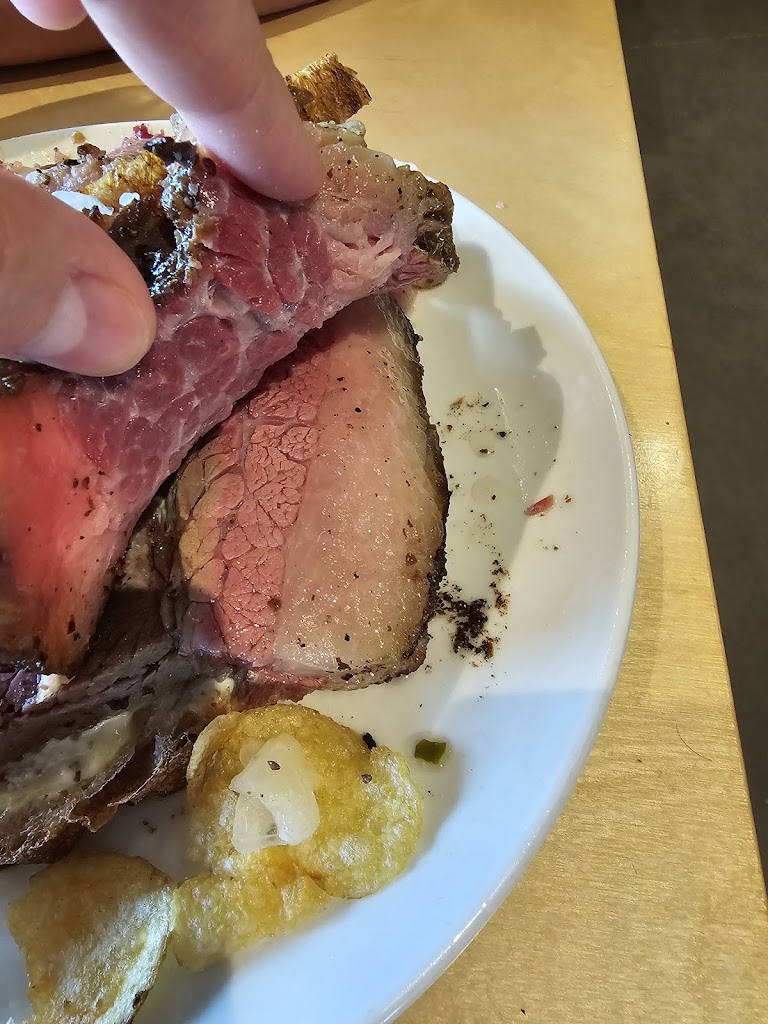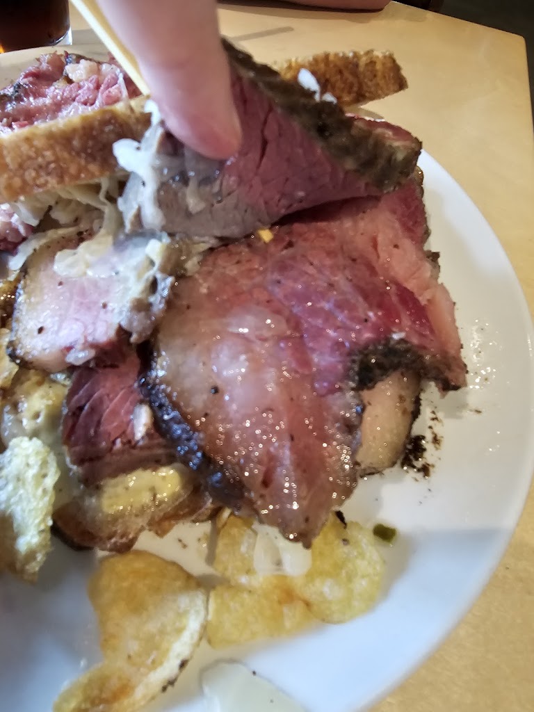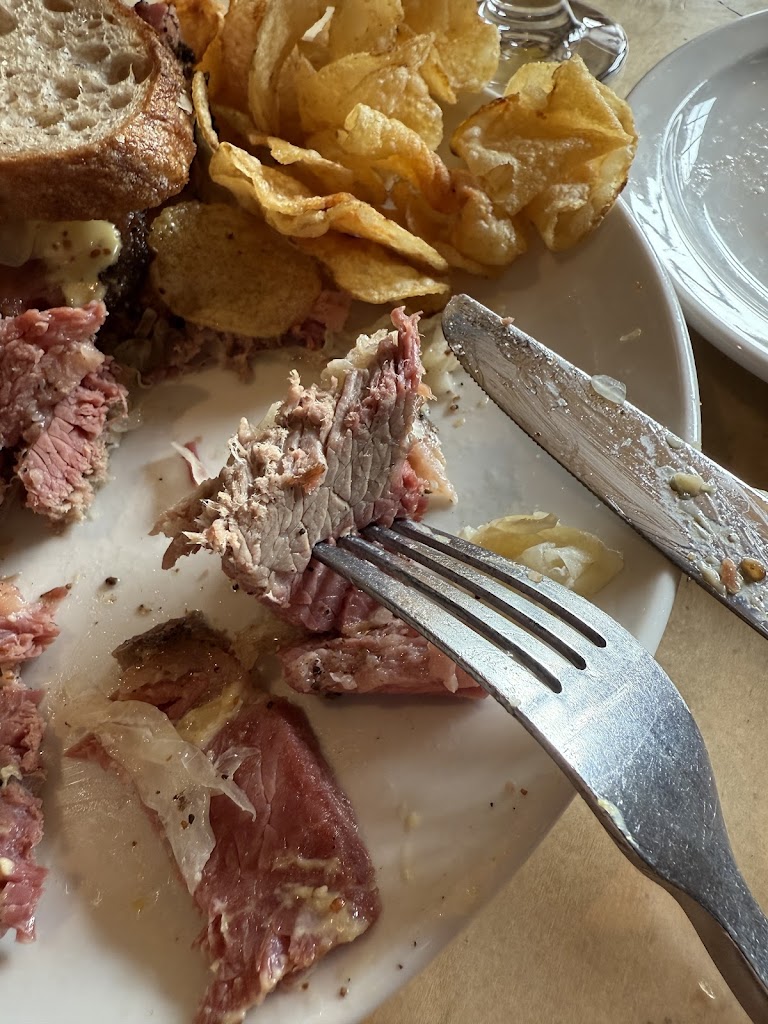 Alright...so we've been here a few times. Food is pricey, drinks are ridiculous...but the food has been pretty good...until today. My husband order the pastrami, but what he got was an experience in large slabs of slimy fat. It was disgusting. We did mention something to our waiter. He said, "okay". That's it. Pictures don't do it justice. Definitely do not order the pastrami unless you love slurping up greasy, slimy globs of fat.