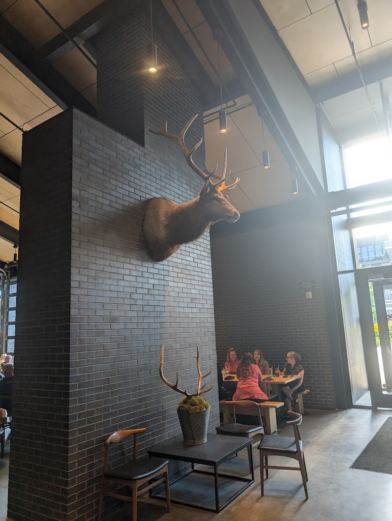 Upscale and open atmosphere with a very true-to-form Midwest touch of taxidermy deer, elk, and every other imaginable antlered creature. Went here to celebrate with a friend and were treated gratefully by Magda who was an utterly wonderful (and comical) waitress. Food was quite delicious with the kitchen paying attention to the finest details when it comes to flavor pairings. Beer was wonderful too! Magda and now myself would recommend the Maple Bock and Jamaican Haze.