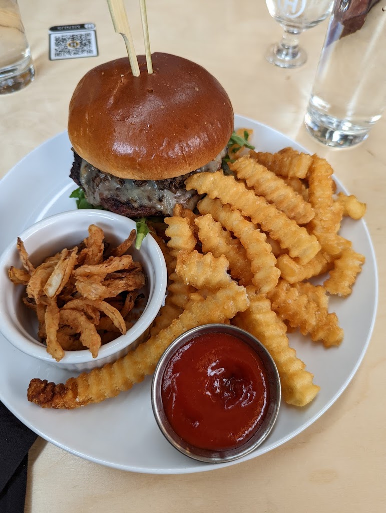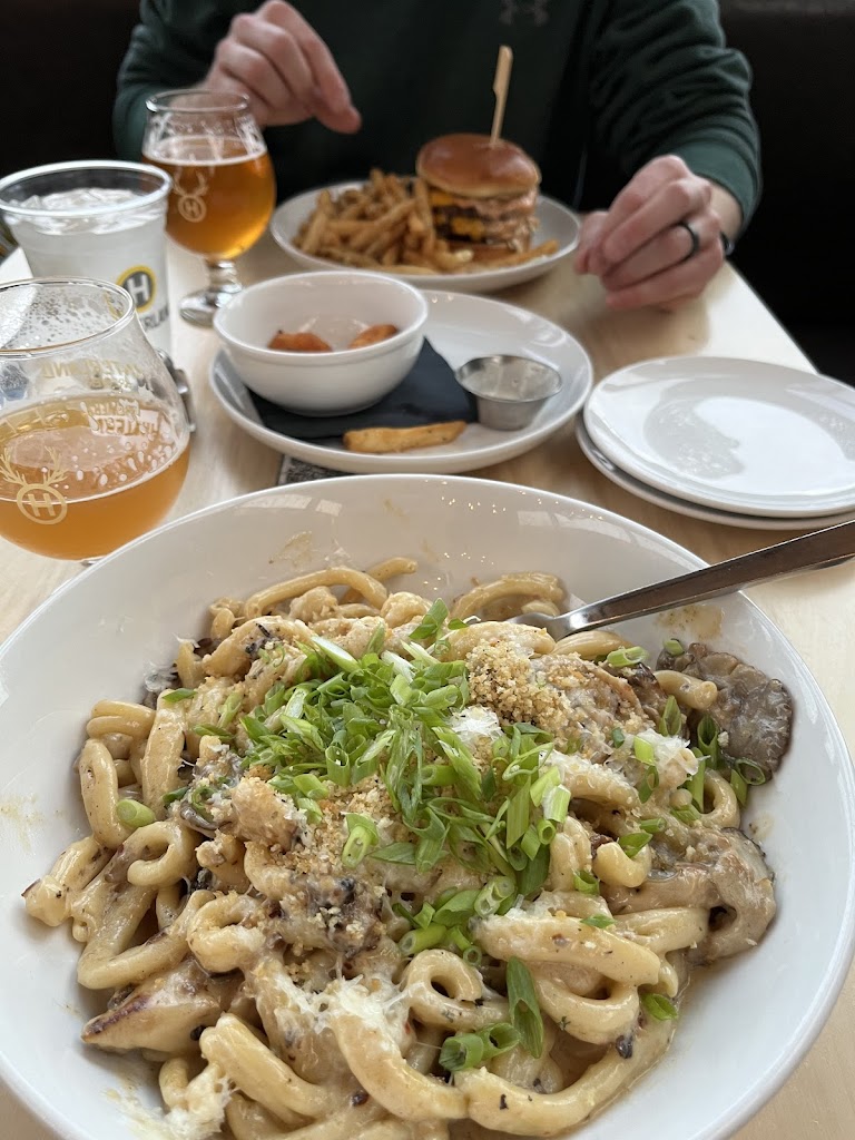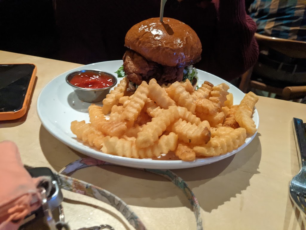 Amazing food…I had the cod filet sandwich crispy outside tender inside…beer flights are fun and a great variety of beer to choose from!