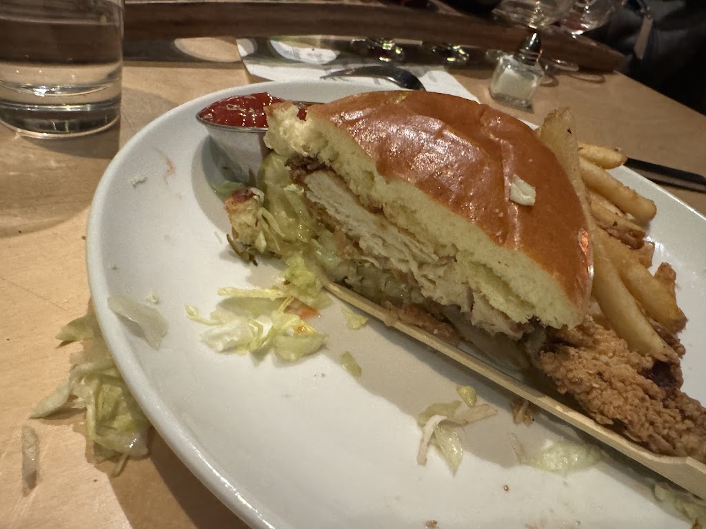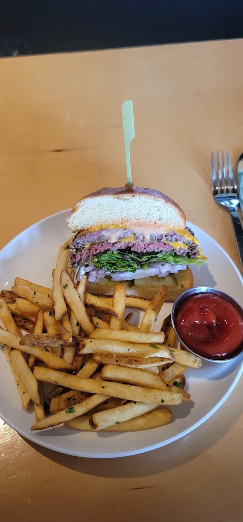 Our server was wonderful, the food was ok at best. We ordered the Double Butter Burger and the Crispy Chicken sandwich. The chicken was overcooked and dry and the burger had no seasoning on it. The fact that the burger is $22 and only comes with chips is ridiculous. If you want fries it’s an extra $3. We were seated in a back area and were the only customers left back there. Half way through our meal staff started cleaning and mopping the floor. I wanted to give this restaurant a fair chance but it failed.