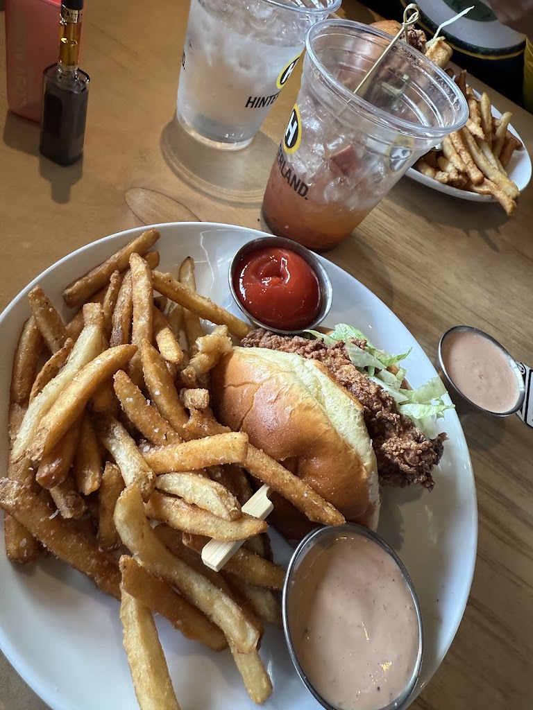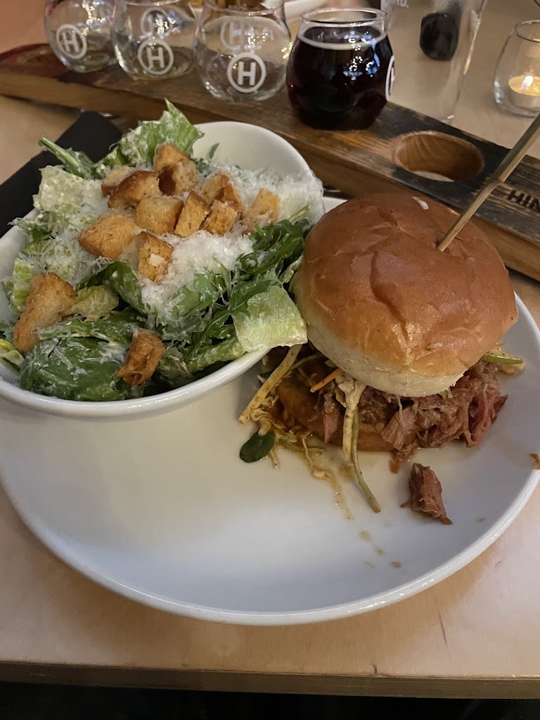 Service was awesome. Food is lackluster. Tried the Big Hinty, tastes exactly like a burger from Culvers, so if I can get the same food at Culvers, I'm gonna do that instead of paying 22 bucks for the same thing. The pulled pork sandwich was also just okay, nothing to write home about. The Caesar salad tasted weird, I don't know how to describe it, but the lettuce had a bad aftertaste.