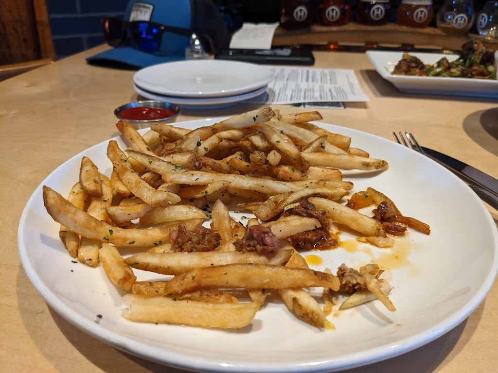 Have been here multiple times but most recently this past weekend. Always loved the atmosphere being able to sit outside in the summer and have one of their amazing beers. The food this time was okay. Brother in law had a request to seer his tuna and they followed instruction. Service was good can’t complain. Only thing I would change is the prices as even a bowl of chili was $12, but overall a good place