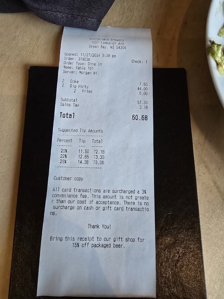 Hinterland (in Titletown), right across from Lambeau, is a solid spot. It’s usually busy, especially on game days or the night before, but the atmosphere is great; lively without feeling too chaotic. The place has a clean, modern feel and a good energy overall. The beer selection is excellent, with plenty of great options on tap. It’s a good stop whether you’re there for dinner or just grabbing a drink before heading over to the stadium.