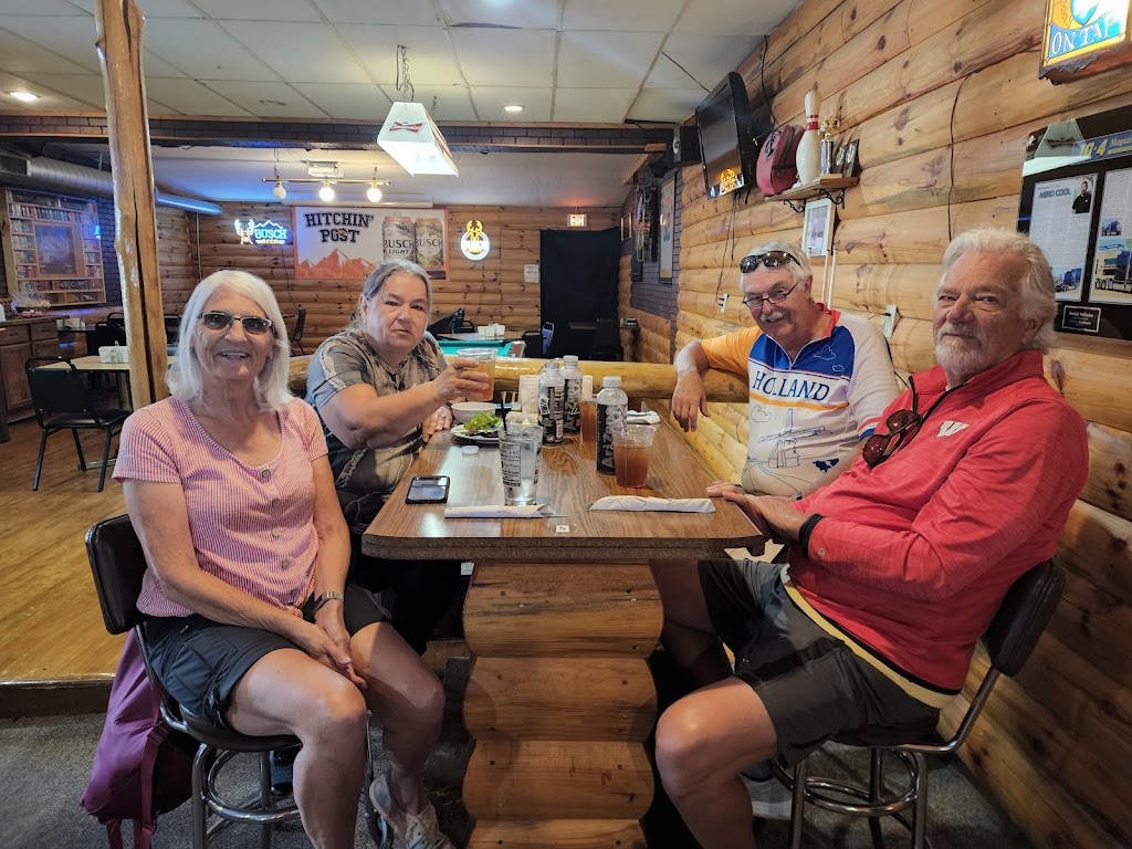 While camping at the Village campground in Wilton this weekend we stopped in at the Hitching Post for a drink and food on Saturday while the heavy rains hung around. We met great people, made some new friends ate tasty wings and the best homemade Chicken Alfredo with mushroom pizza. We hung around enjoying the company of Theresa, Hank and Patty. Thanks for the good conversations and great drinks. I personally enjoyed Hank's fresh squeezed oj with the LaCrosse distilled Vodka...just a bit salty. 😉😍😋😂 Thanks Linda & Rick Froehlich