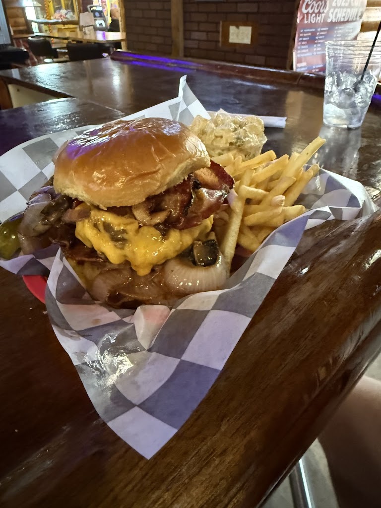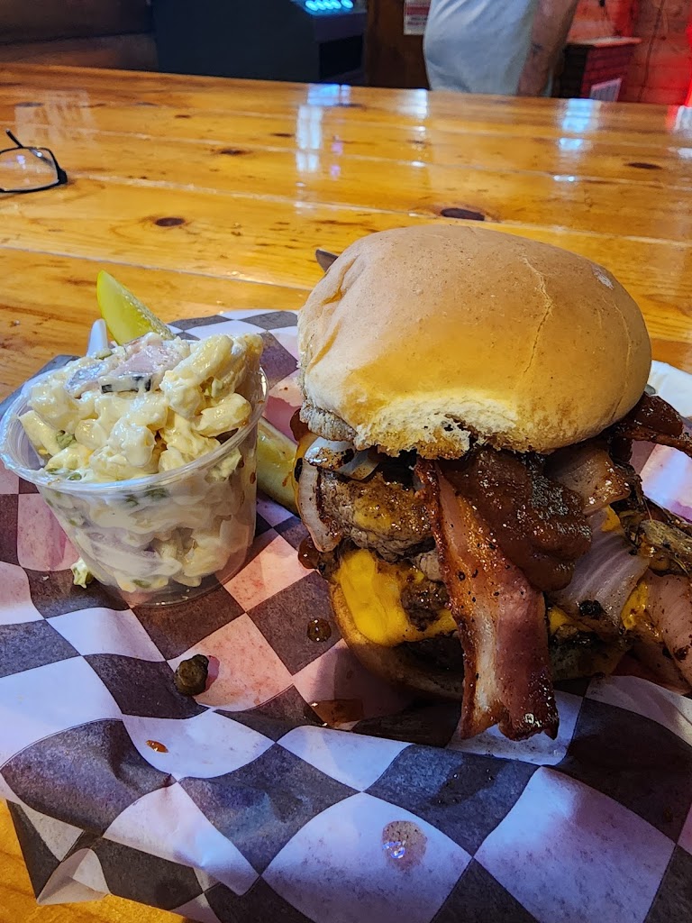 Great bar burger, perfect sear on that 1/3 # burger, so good and delicious homemade Mac salad. So reasonable and super friendly service. Right off the bike trail.