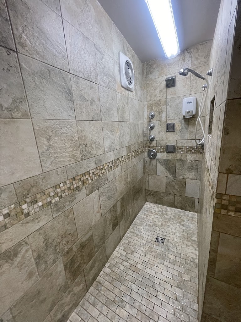 Clean shower, and only 10 bucks! Friendly place and plenty of truck parking. Great food!