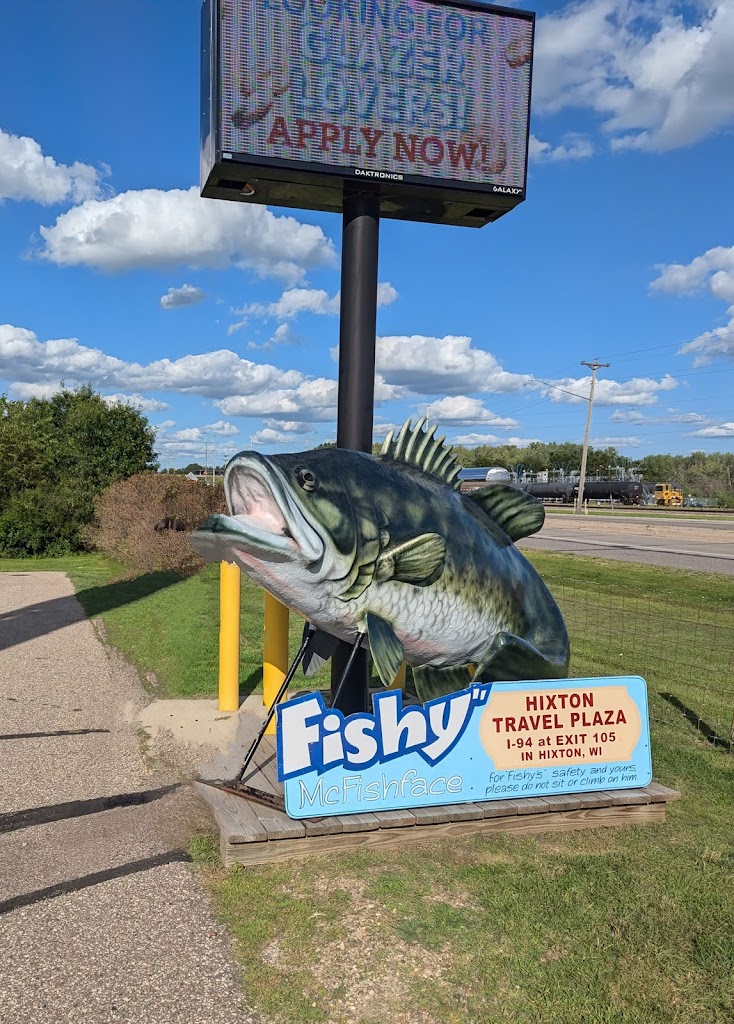 McFishface has been moved into the sun so visit this fiberglass idol of Americana before the sun robs it of its optimism inducing shine.
