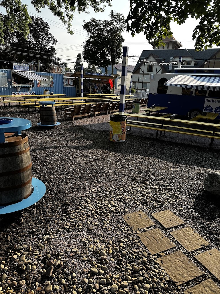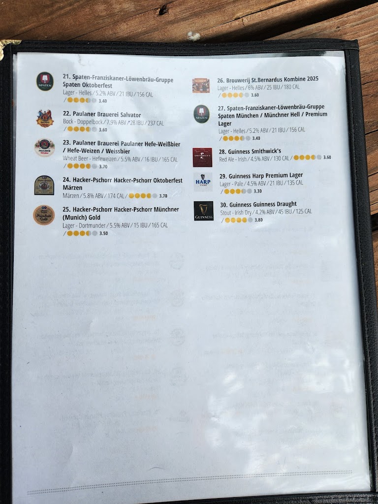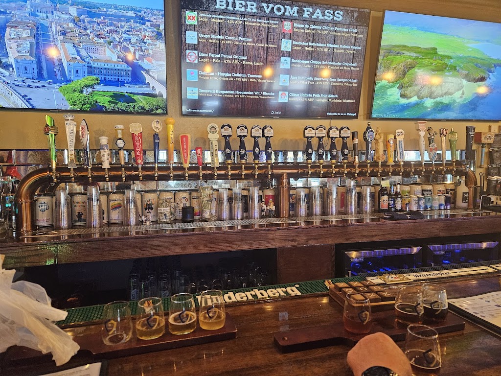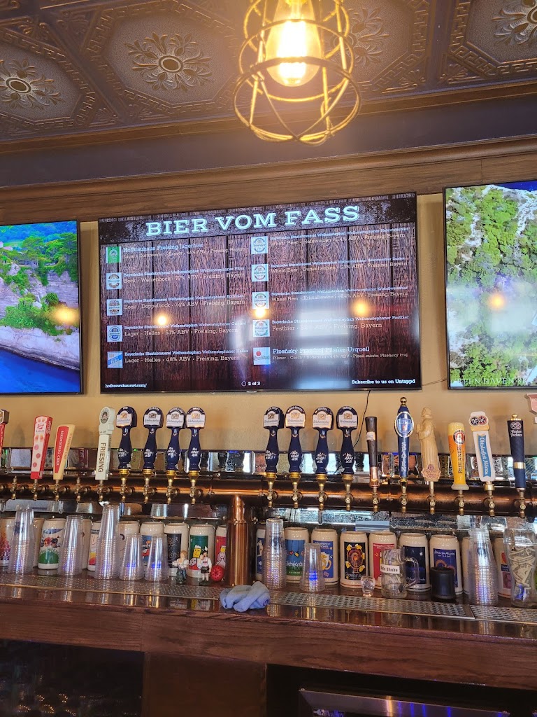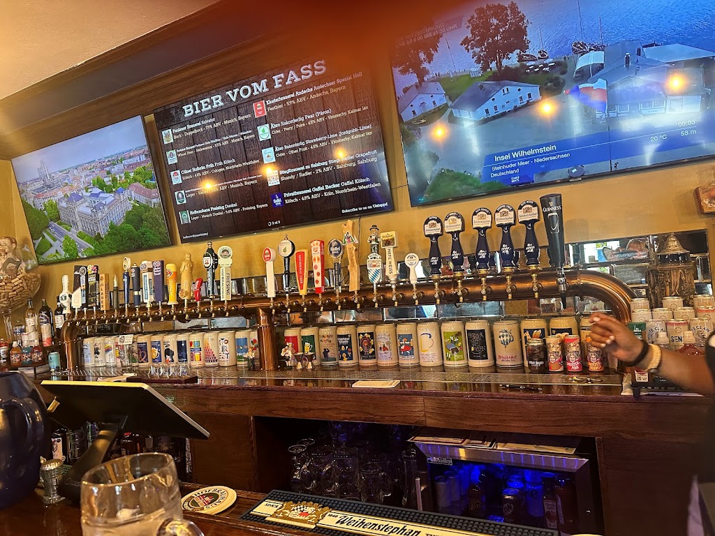 We were just there. Nice and big selection of German beers on tap. Authentic looking place but as we were sitting outside drinking some German beer people kept walking by and not stopping. They said the samething my wife and I said, nobody's gonna wanna come and drink good German beer and listen to hard rock, pop rock, etc, when they should be playing German music and not all the music we have partyed to and listen to all the time !
