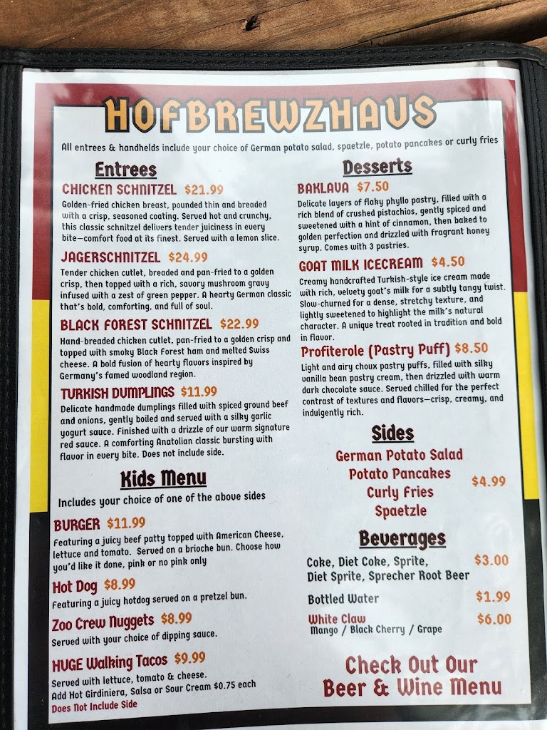 Not a topical Hofbrewzhaus, very Turkish decor and menu was about 40% Mediterranean dishes. Music in the dining room was loud and the kitchen music was even louder playing gangster rap.