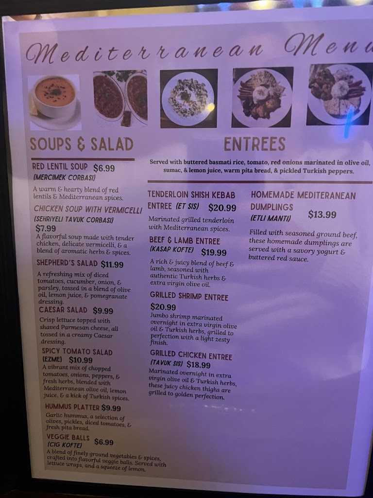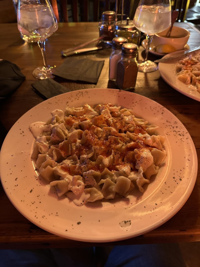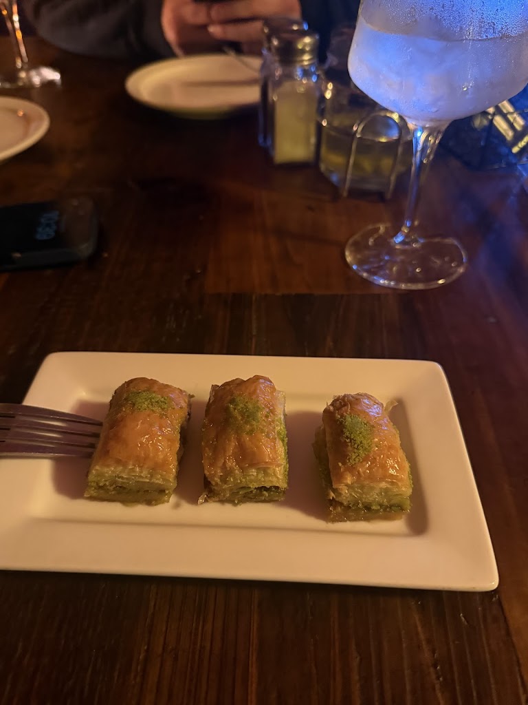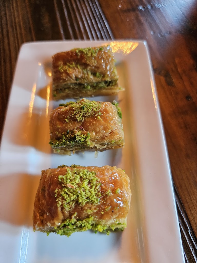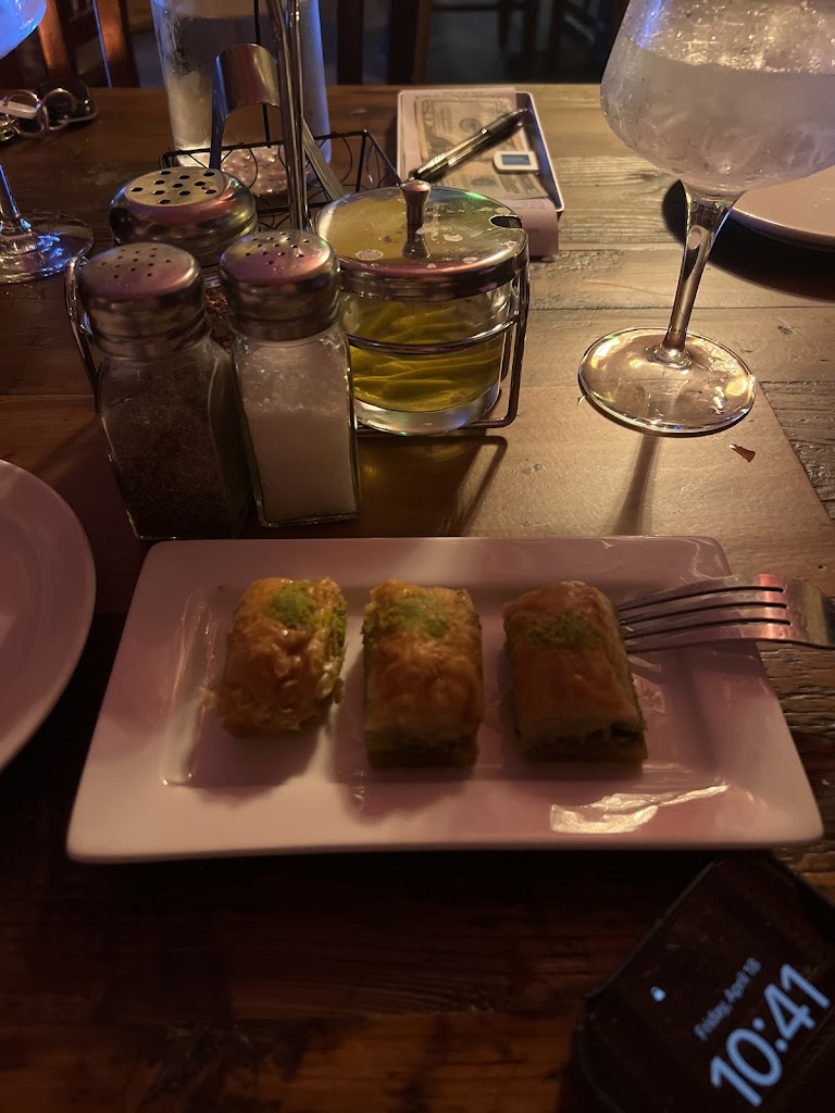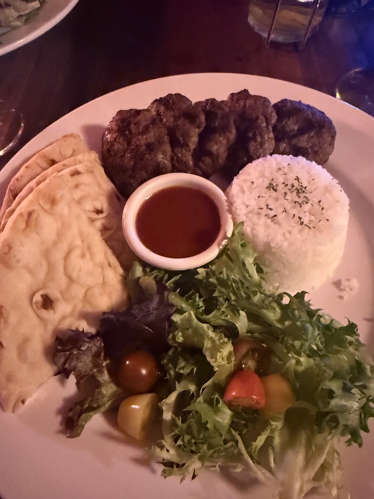 Service was good. The Turkish Dumplings were under spiced and a bit low on the filling. The meat in the doner kebab was fantastic, but there was so little of it that there were bites with none in it. Baklava was decent.