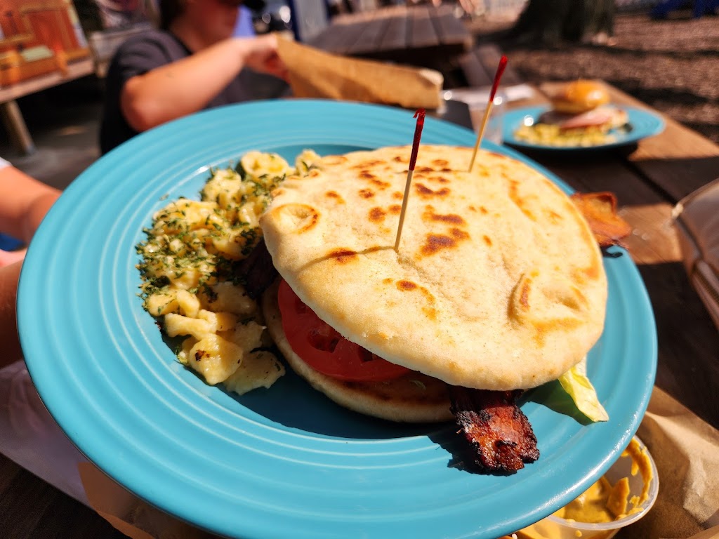 we really enjoyed the area and the kids had a great time but when it came to dinner, it was highly disappointing. We ordered the meat and cheese for everybody to share. They were out of hummus so they substituted marinara for our cucumbers and crackers in what world does that sound good ?? That is the worst substitute. I didn’t touch it. The cheese was growing white fuzz (only cheddar chunks were given, along with green olives and grey salami) I was still charged $18 for it. The kids hotdog was cut in half and the bun was double the size …bees were everywhere. I think it needs some attention and management.