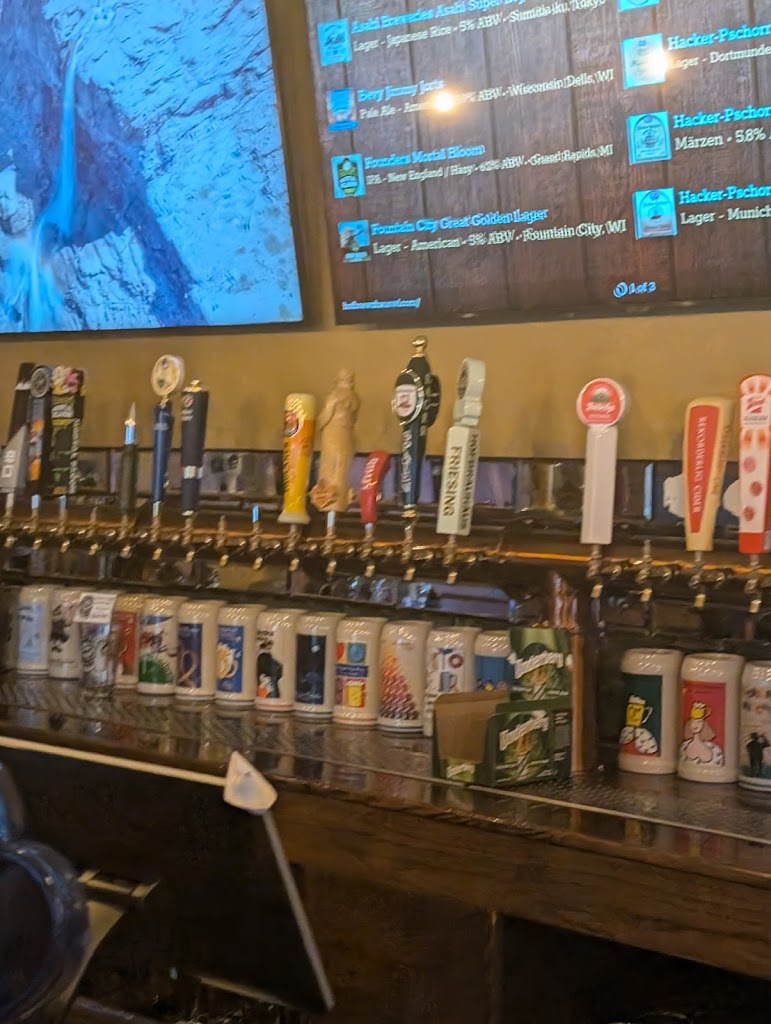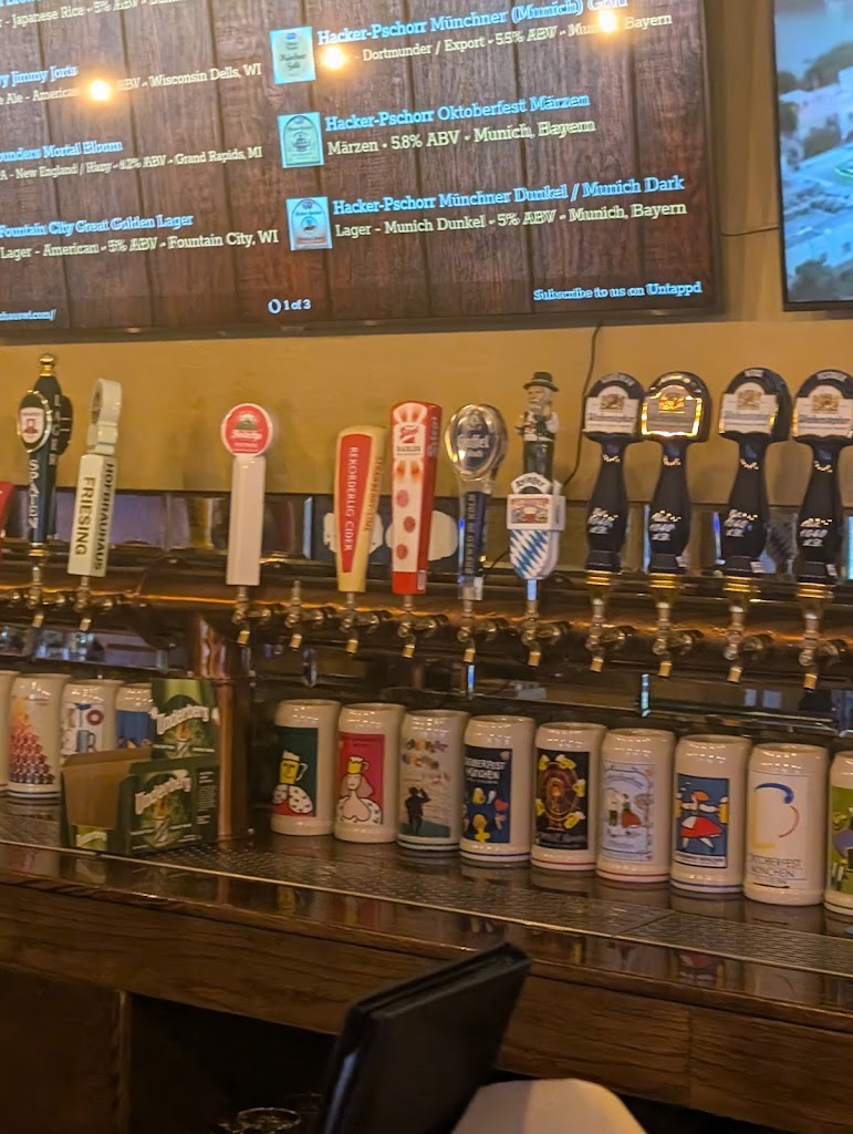 The German beer selection was vast, the food was incredible and authentic. The couple next to us and my husband said it tastes just like their German grandmas made. The staff is so friendly and welcoming. The decor was really neat and reminiscent of Germany and they had pics of different German towns rotating on the TV in the bar. We will be back here every time we come to the Dells.