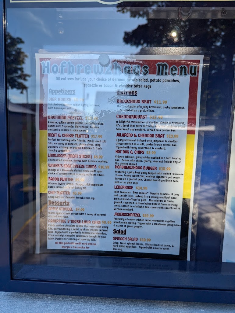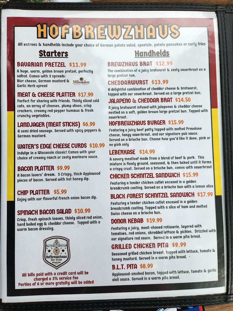 I expected a lot more from the name of this business. It seemed that there wasn't enough staff. Seating inside was poor. I didn't like metal high chairs with no backs. The music that was playing was a techno music. I would have thought they would have a German flair. Nope! Food cost was really over priced for what was presented.