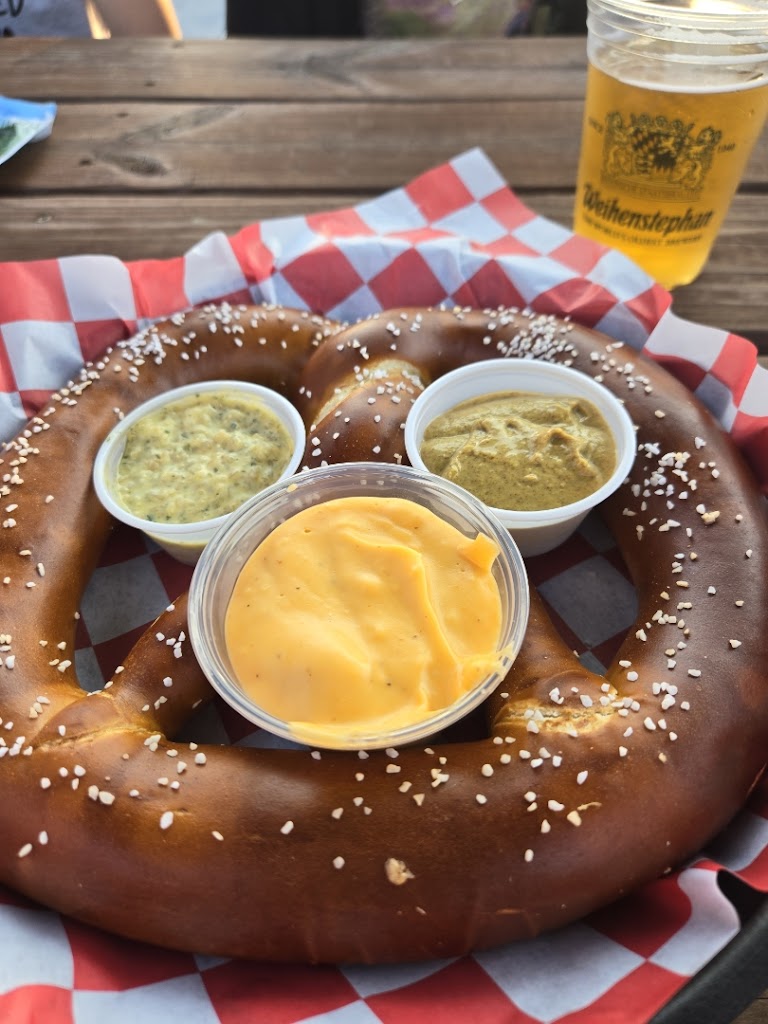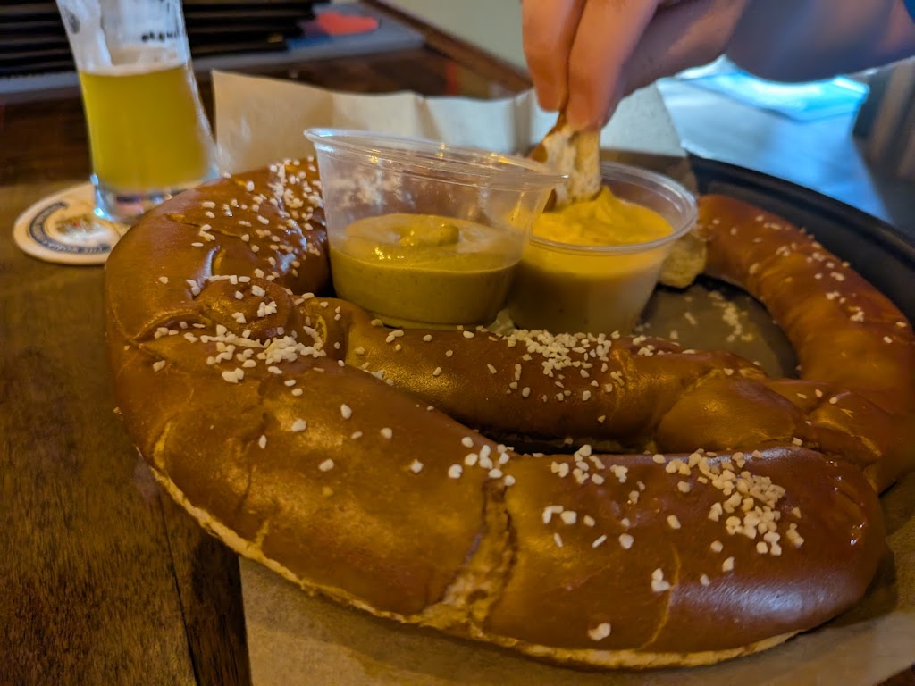 Magnus aka Yuri made our visit pleasant. He was a great conversationalist and happily included my children. We had the big pretzel which was tasty and the 3 dips to accompany it were wonderful. The summer sampler was spot on and very refreshing. Overall, a great visit! Sehr gut!