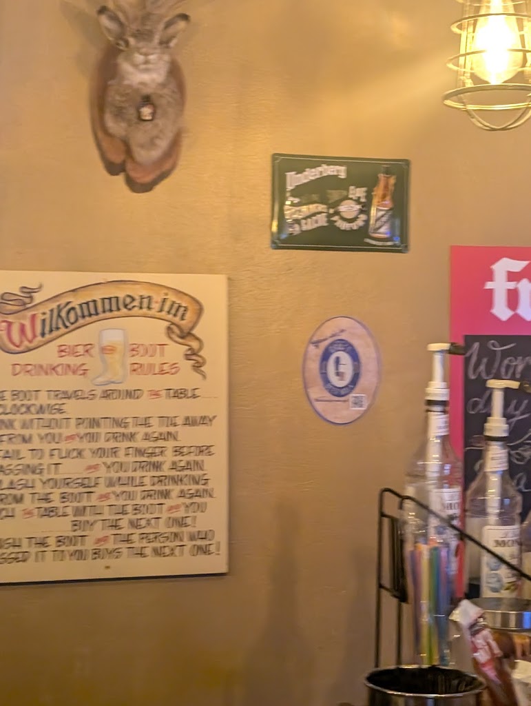 Our visit started off fine. The bartender was attentive and nice. They were out of Leberkase which was disappointing as that was one of the reasons we stopped by but no big deal. This is where it took a turn… a woman with blondish hair shows up who I can assume is either another bartender or server and literally stuck her finger into a customers beer. Not sure if she was checking the temperature or trying to get the foam down but I watched it with my own eyes and the beer was then sent out. There’s no way that was the first time she did it. Didn’t even check around to see if anyone saw. Hard to want to come back after that one. 2 stars since the original bartender we had was pleasant.